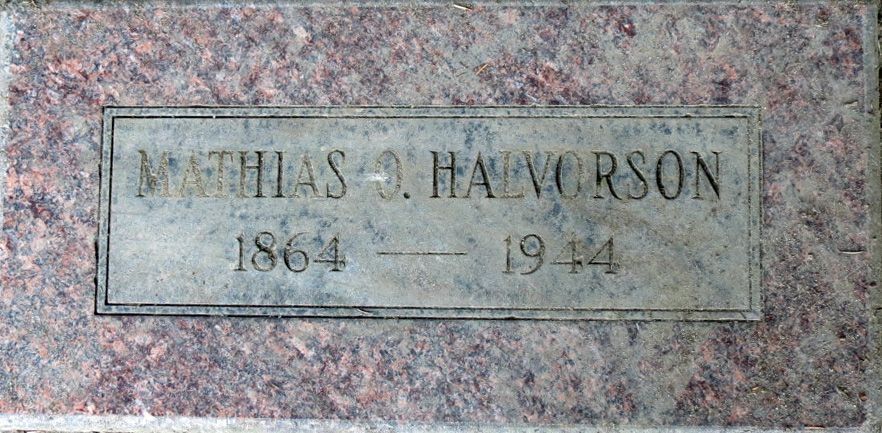 Mat O. Halvorson passed away, age 80, at a hospital in Bremerton, Kitsap County, WA, on 12 February 1944 [WA Death Certif.]. Mat Halvorson was interred at Acacia Memorial Park, located in Lake Forest Park in King County, WA [US FaG grave-marker, below]. As noted in his obituary [Kitsap Sun, 14 Feb. 1944], he was survived by "his wife Claire [Clara], of Bremerton; two sons, Owen of Bremerton and Roald of Buckston [Buxton], N. D.; four daughters, Mrs. [Inez] Elsworth, New York City, Mrs. Mildred Bartlett of California, Mrs. Hortence Dennis of North Dakota and Mrs. Sylvia Crook [Cook] of Seattle and six grandchildren."