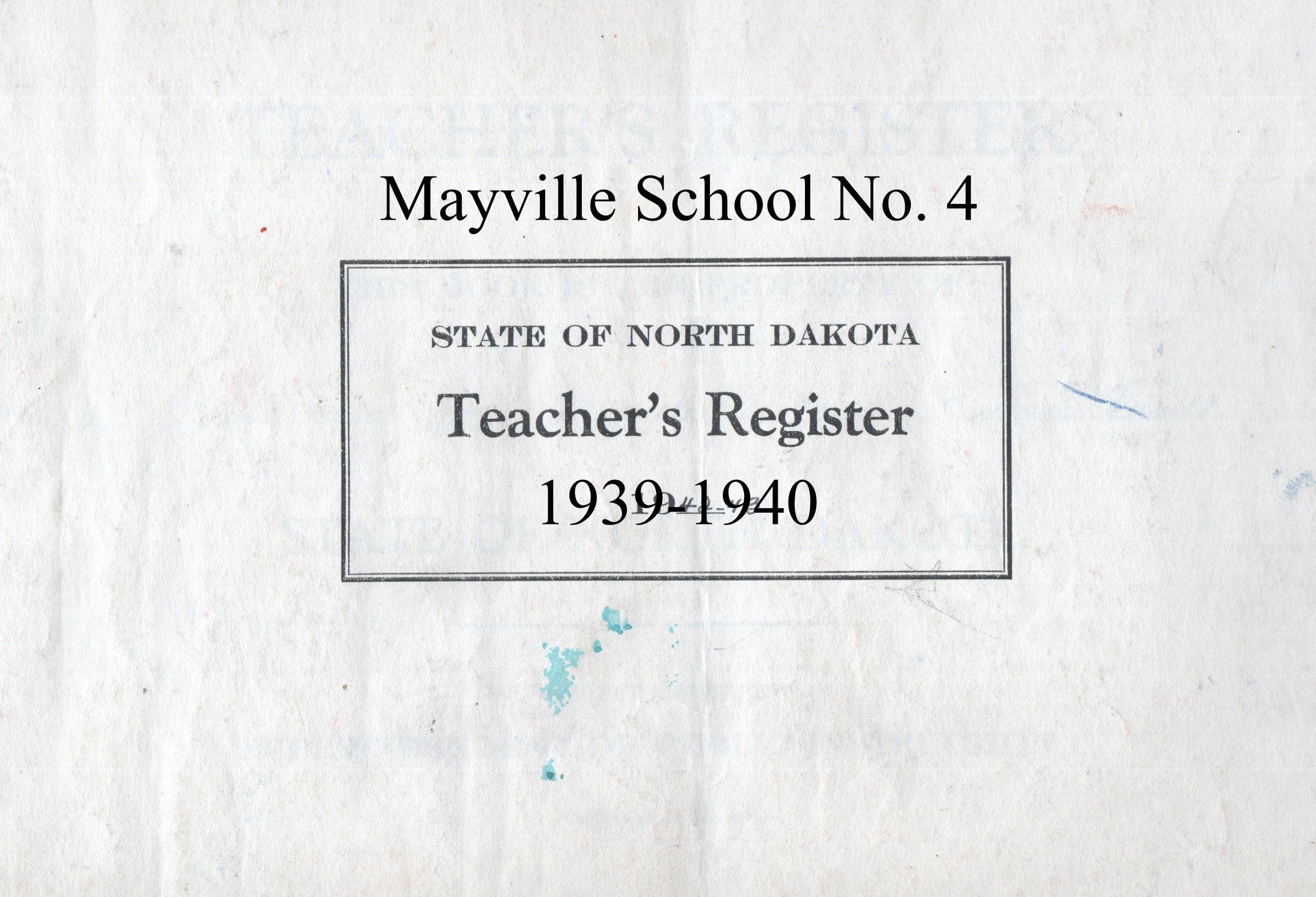 Mayville School No. 4, 1939-1940 Teacher's RegisterEntry/Object ID