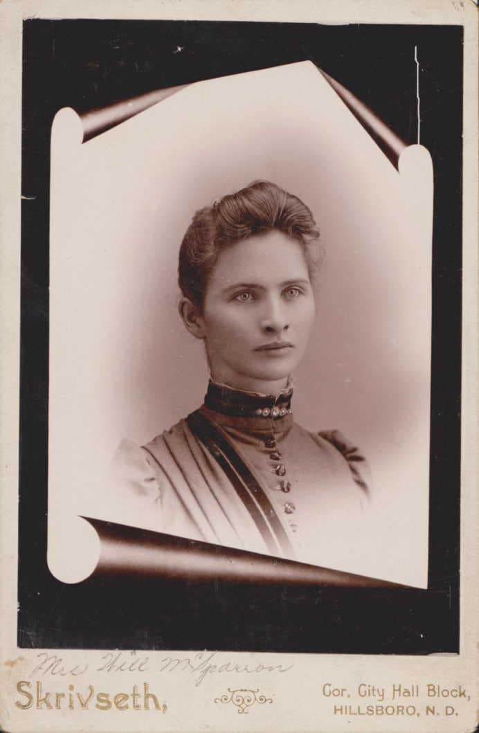 Another user on Ancestry posted a photograph of Agnes (Mitchell) McSparron--also taken by Skrivseth in his Hillsboro photo studio. Agnes married William James McSparron in 1891. William McSparron was an early settler in Bohnsack Township.