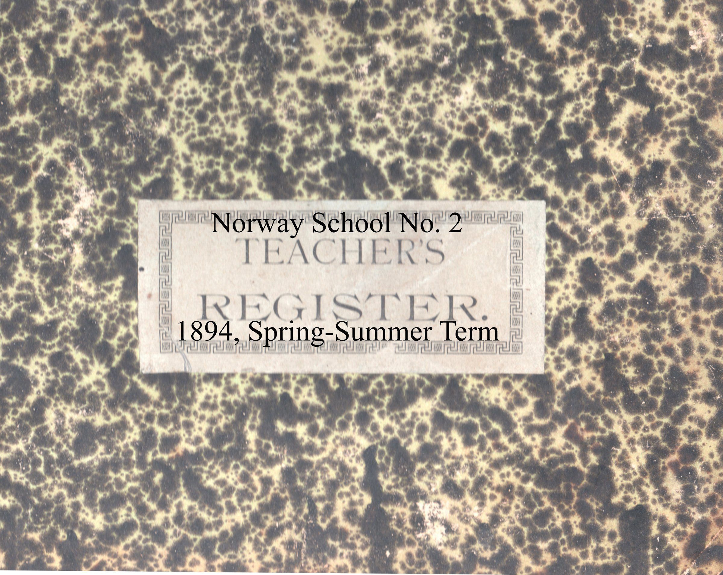Norway School No. 2, 1894 Teachers Register, Spring-Summer TermEntry/Object ID