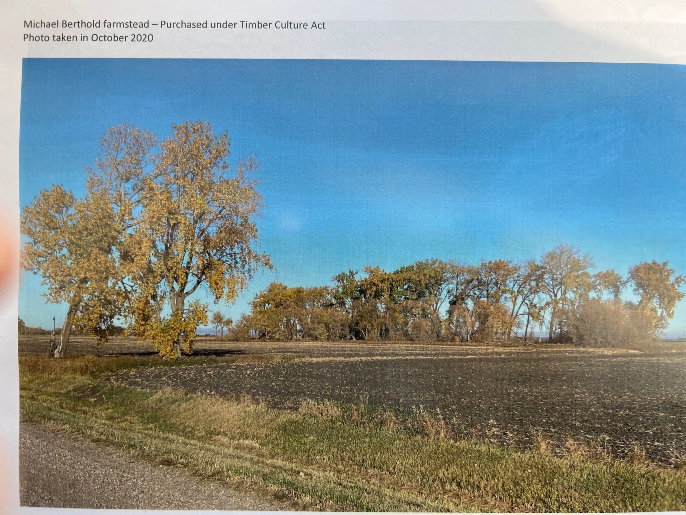 A photograph of the original Homestead site of Michael & Helena (Schotthoefer) Berthold in Buxton Township, Traill County, ND. Photographic credit to John Berthold in October 2020, their great-grandson and provided by Mary (Berthold) DeMers, their great granddaughter.Context