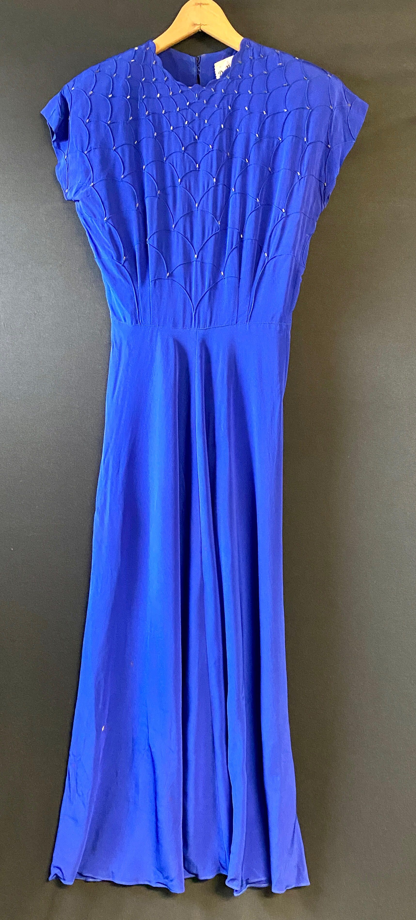Long Royal Blue Dress with Scalloped Neck and Beaded BodiceEntry/Object ID