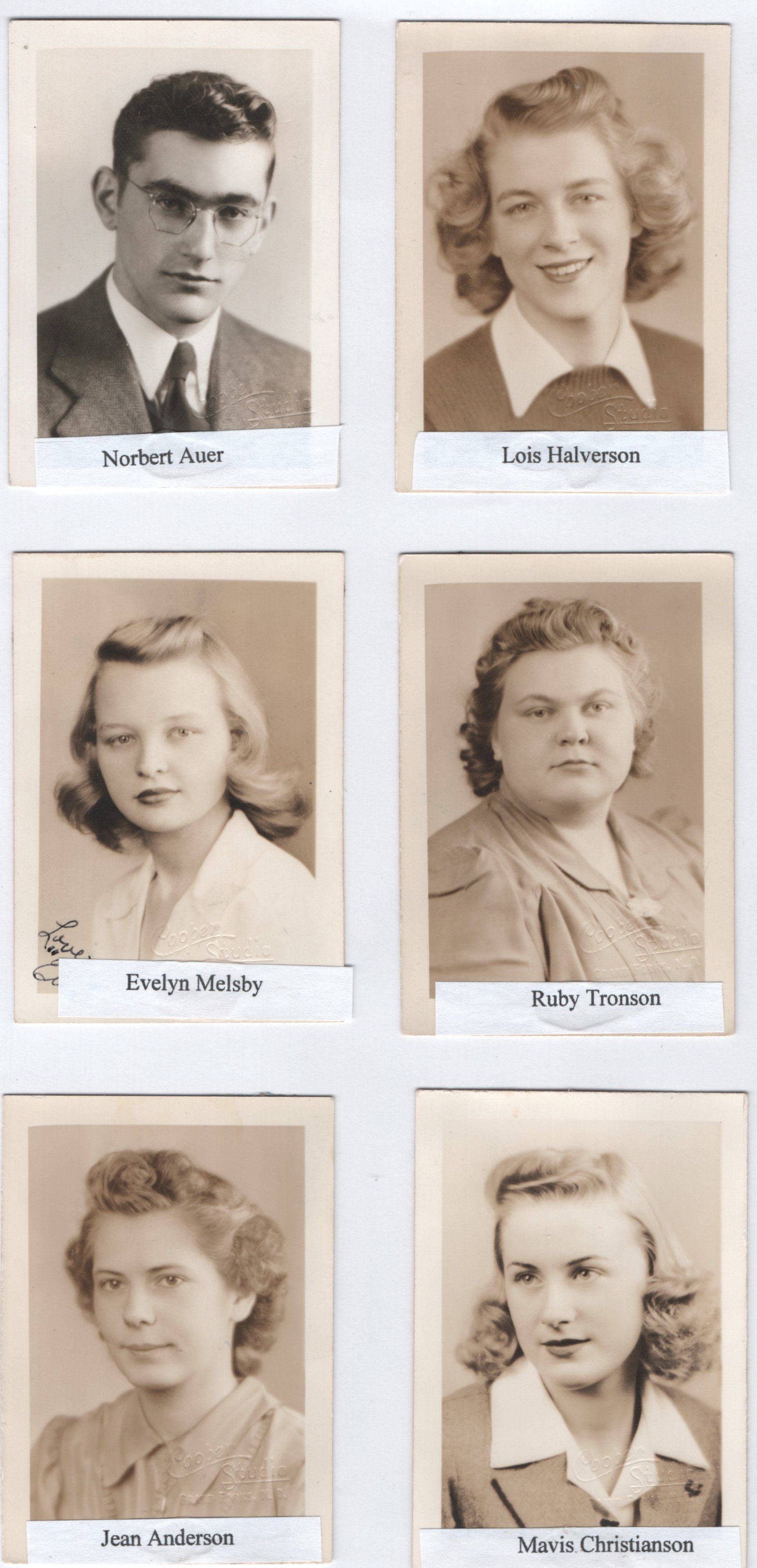Included in the 1943 Class Roll but not pictured is Cecelia Elton, Robert Johnson, Elaine Lee, Robert Lorch, and Donald Skogen.Acquisition