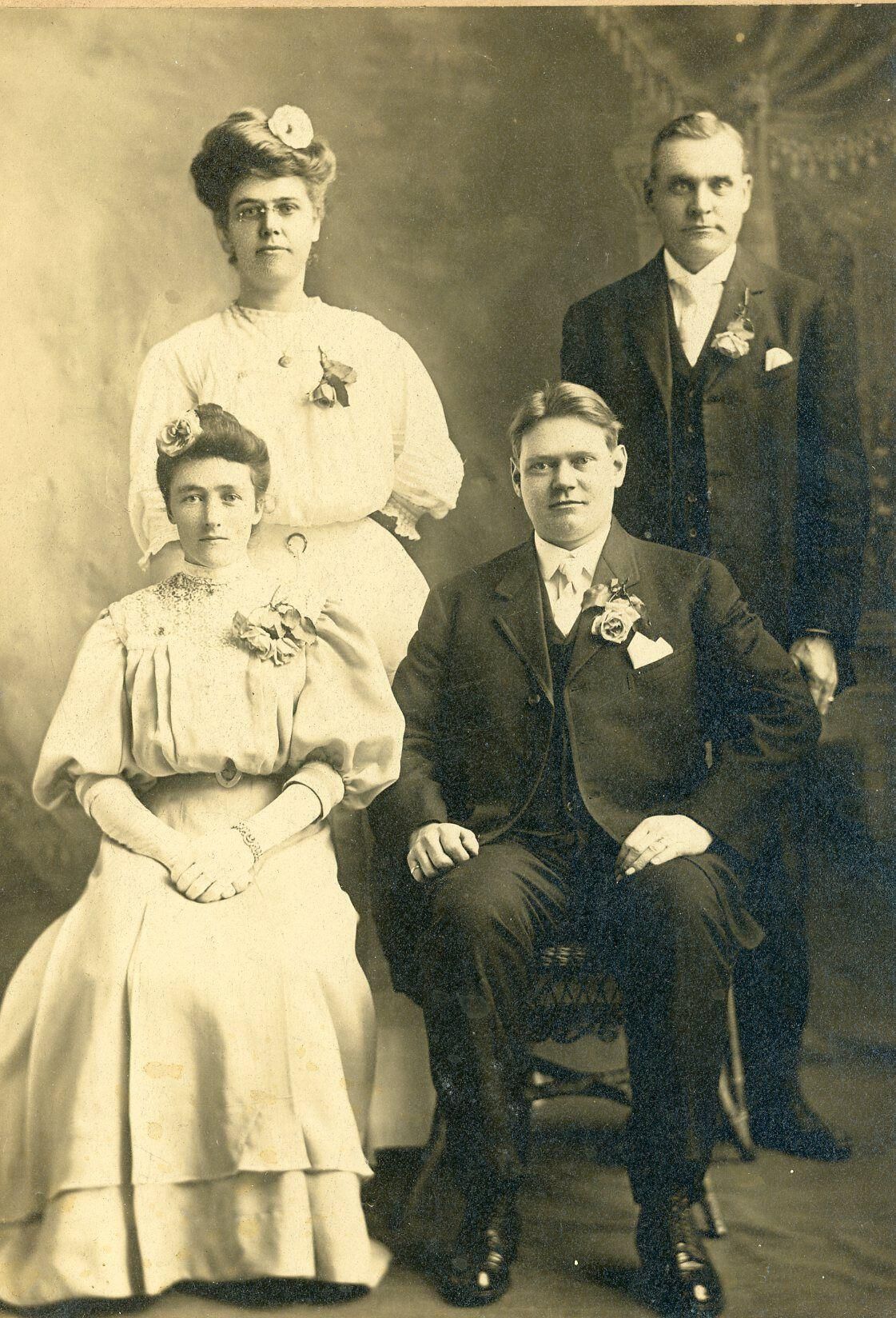 Mr. & Mrs. Otto Sorum Wedding Photo. Attendants are Menick Skogen and his wife.