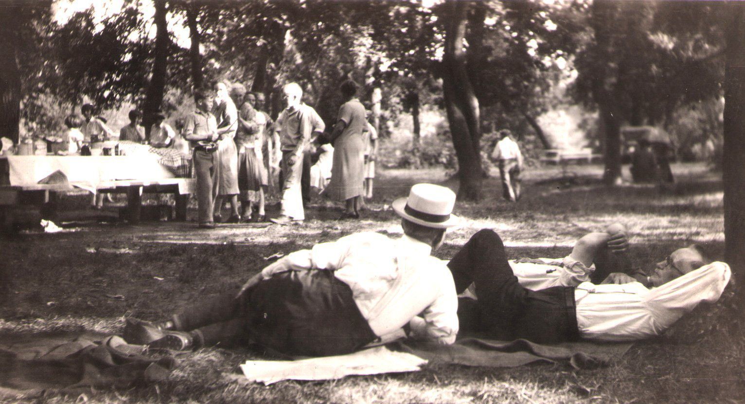 Stina (Halvorson) Hovet with family and friends at the city park in Hillsboro, ND, in August 1926.Entry/Object ID