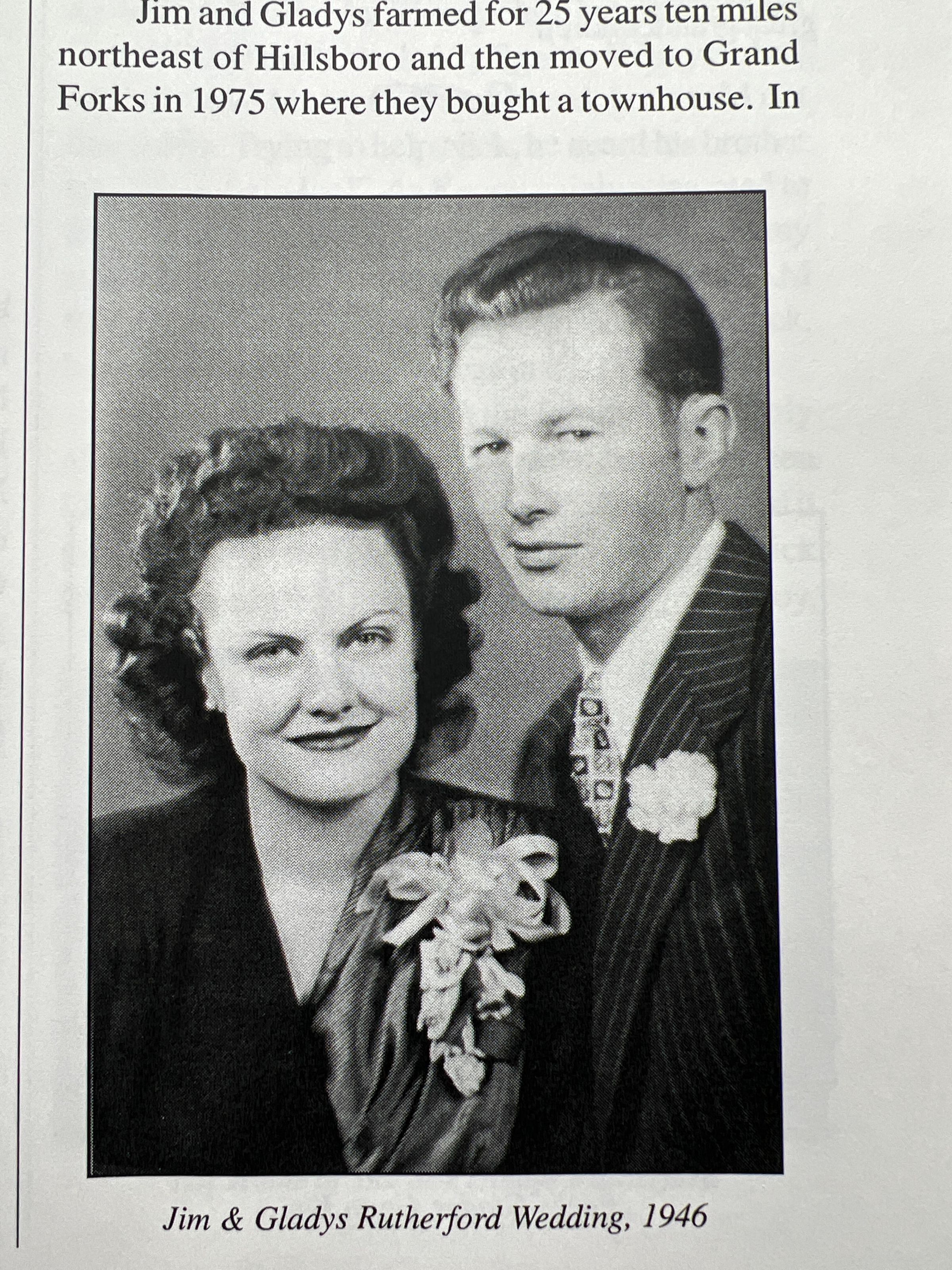 A family history book compiled, written and copyrighted in 2002 by Pamela (Rutherford) Wiedmann, daughter of Jim and Gladys (Gilleshammer) Rutherford, residents of Traill County from 1950 to 1975. Jim and Gladys married in 1946 in Crookston, MN. They had five children, including Gary Rutherford (born 27 May 1947 in Grafton, ND), Diane Rutherford (b. 12 November 1948 in Grafton), Pamela Rutherford (b. 20 March 1950 in Grafton), Peggy Rutherford (b. 29 June 1951 in Hillsboro, ND), and Charles Rutherford (b. 4 November 1952 in Hillsboro).Cataloged By