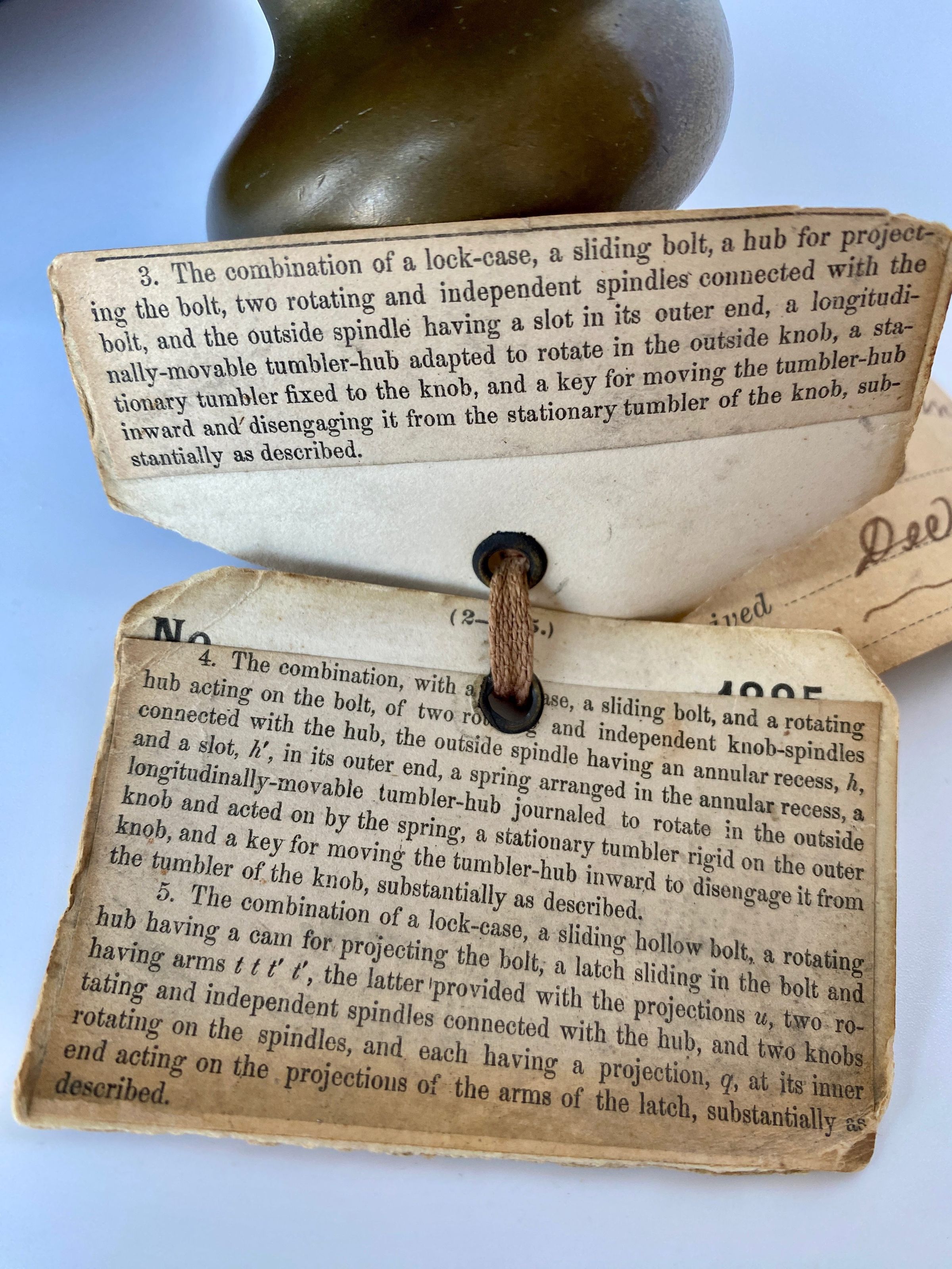 Patent No. 315,456 -Door Lock - 1885Cataloged By