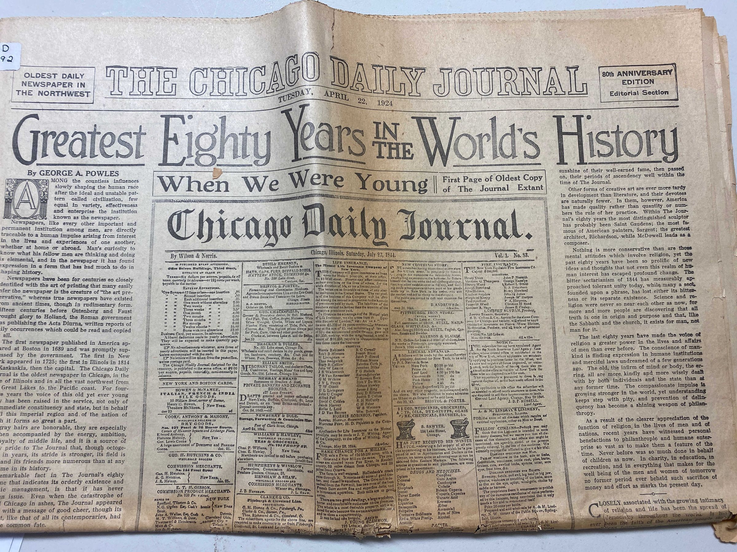 The Chicago Daily Journal - April 22, 1924 - Greatest Eighty Years in the World's HistoryCataloged By
