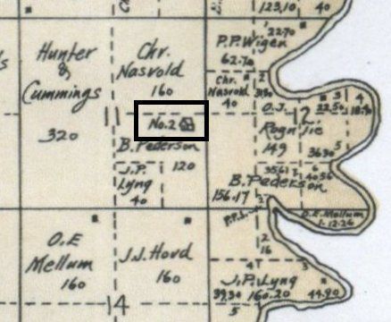 Caledonia Township School No. 2 was located in the SE Qtr. of Sect 11 (see 1900 map, below). In 1900, Sect. 11 was part of South Caledonia Township, which later became Herberg Township.Acquisition