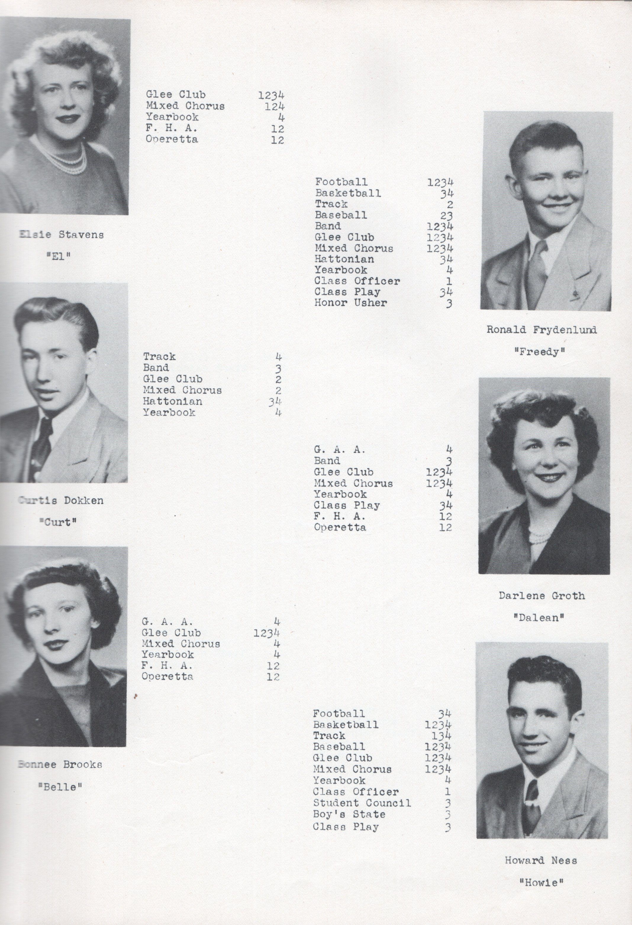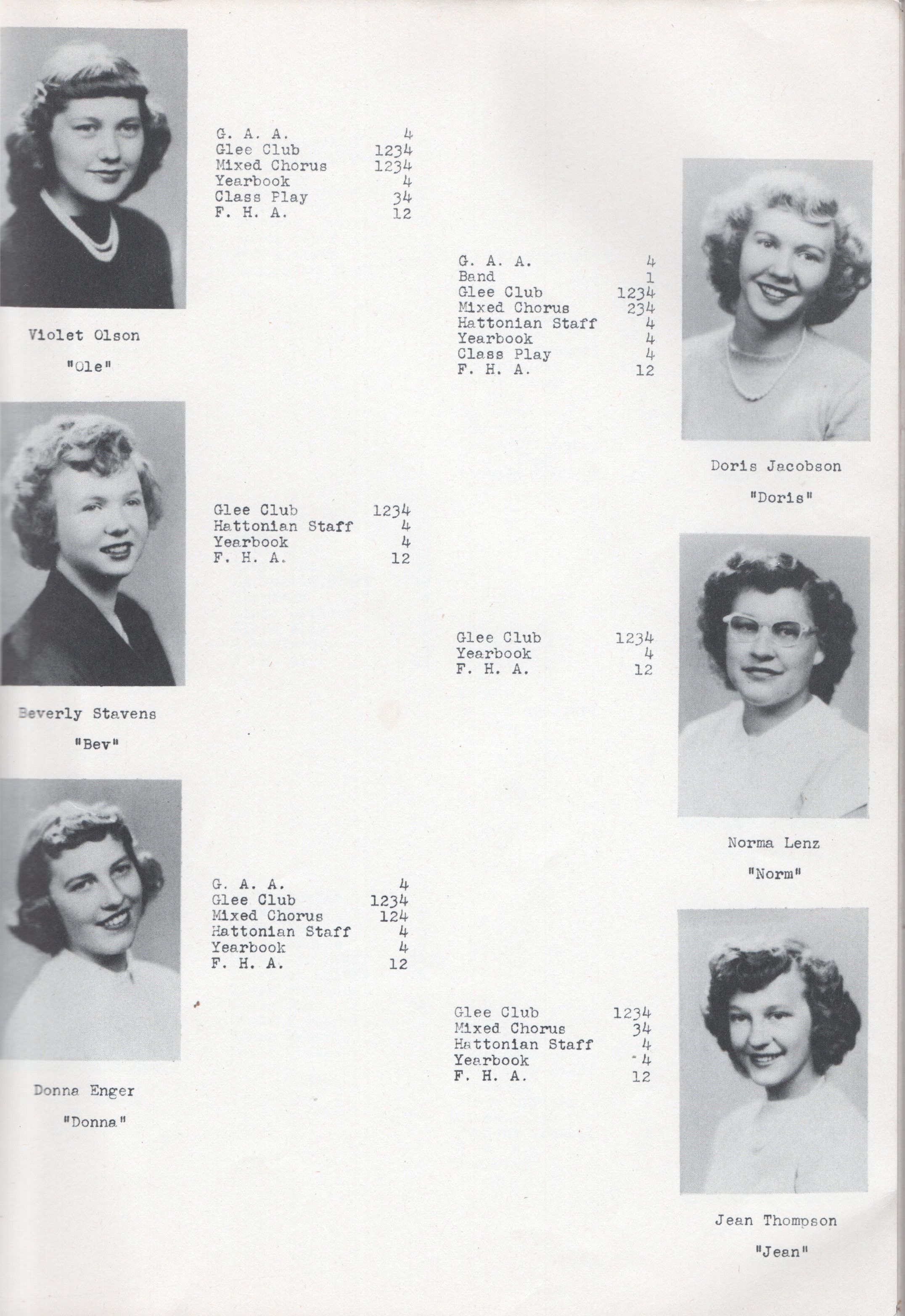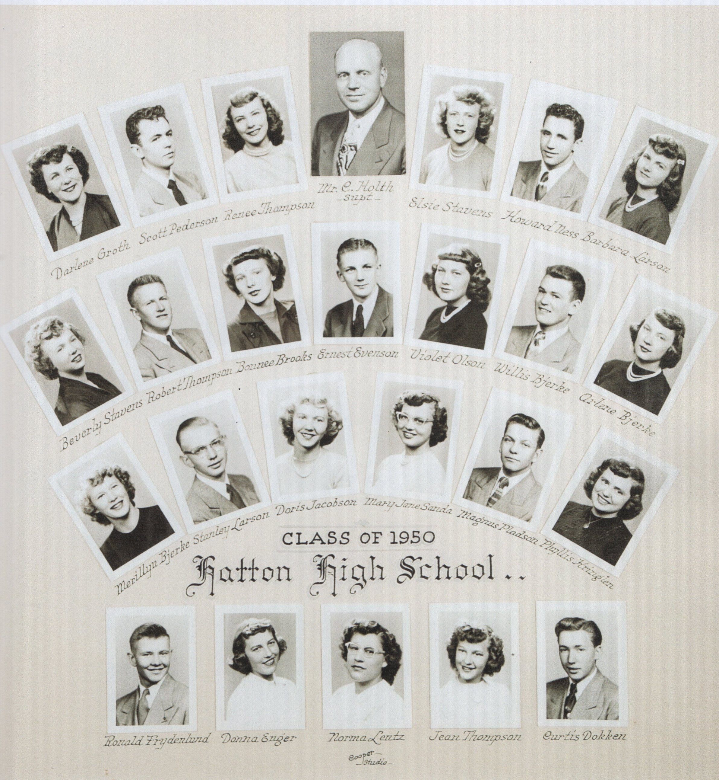 The Class of 1950 Hatton High School Yearbook, titled Hattonian 1950, was dedicated to Mrs. Herman Iverson, teacher.