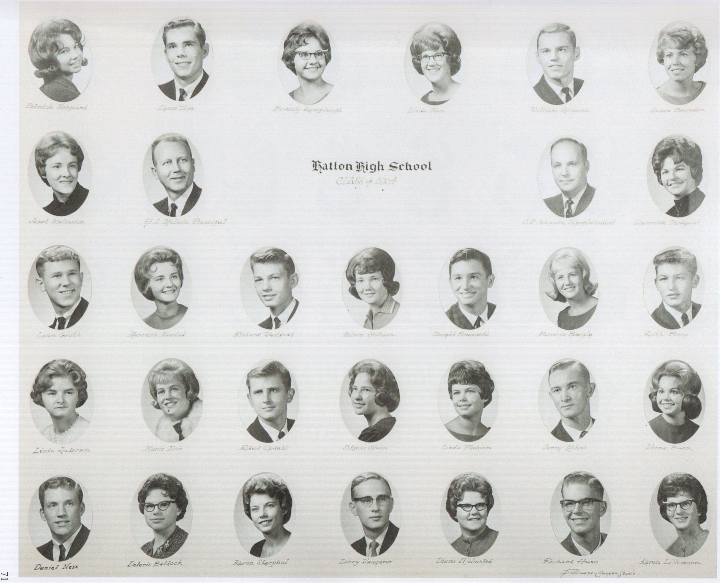 A photograph of the Hatton High School Class of 1964 is included on page 71 in the All School Reunion book, "Hatton Flyers".