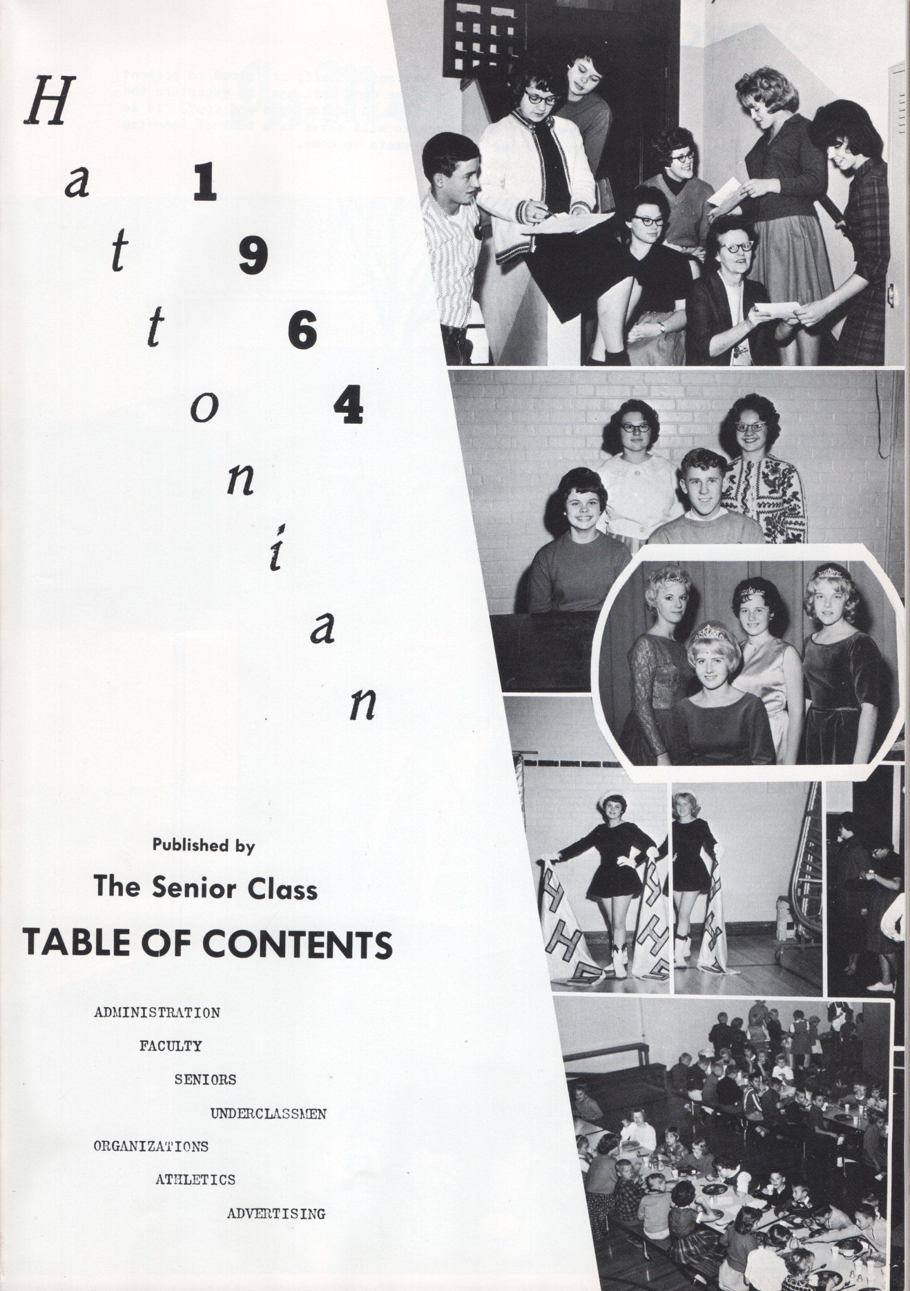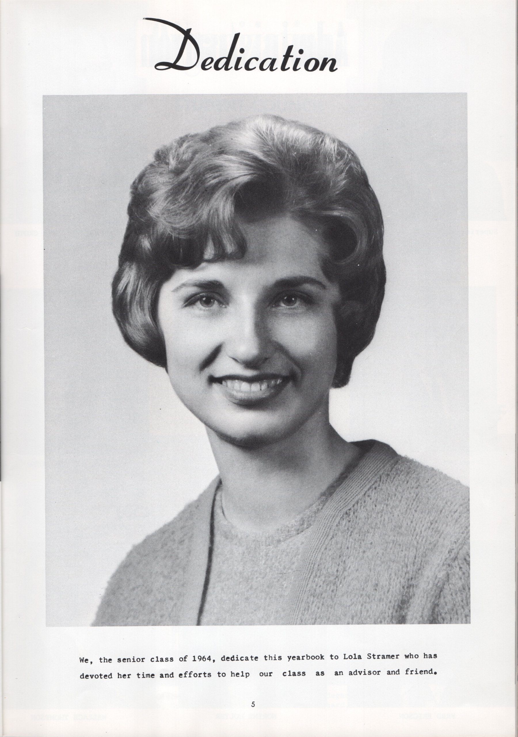 The Class of 1964 Hatton High School Yearbook, titled Hattonian 1964 was dedicated to Lola Stramer, class advisor.