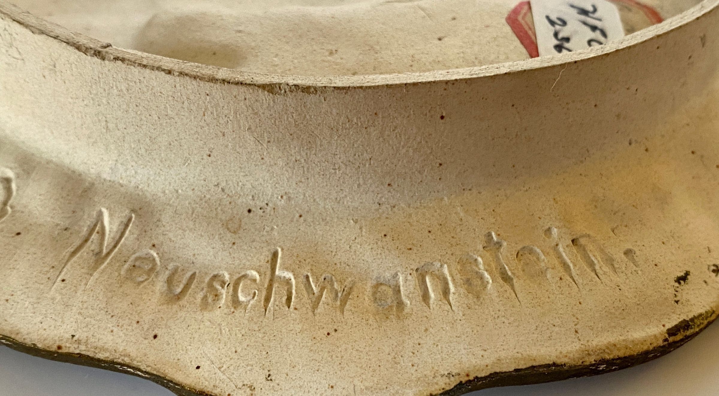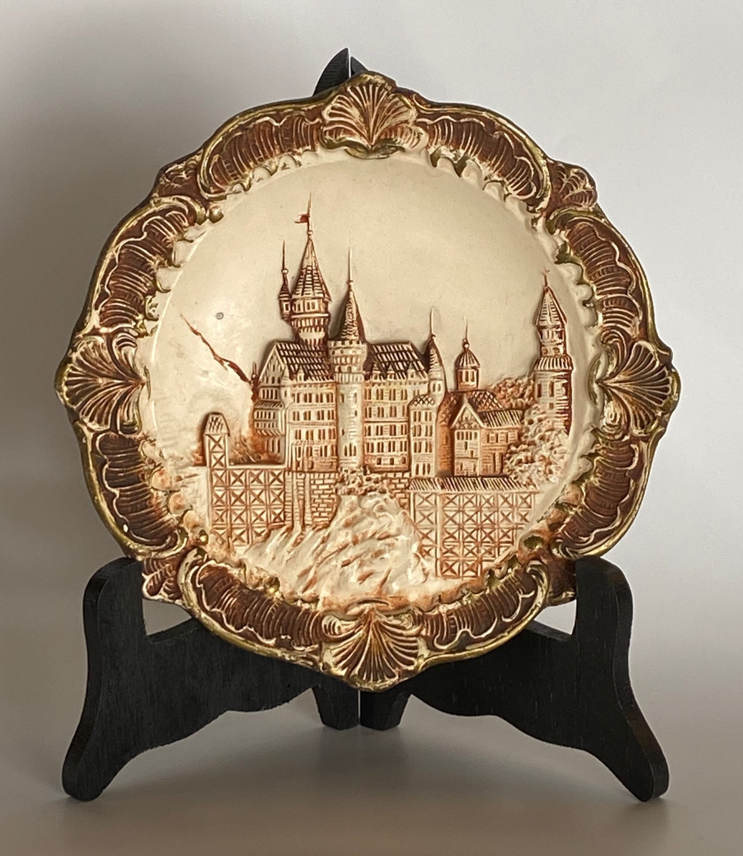 A plate depicting Neuschwanstein Castle, a 19th-century historic palace located in the southwest of Bavaria, Germany, near the border with Austria. This palace was built and used as a retreat by King Ludwig II of Bavaria, who died in 1886.Cataloged By