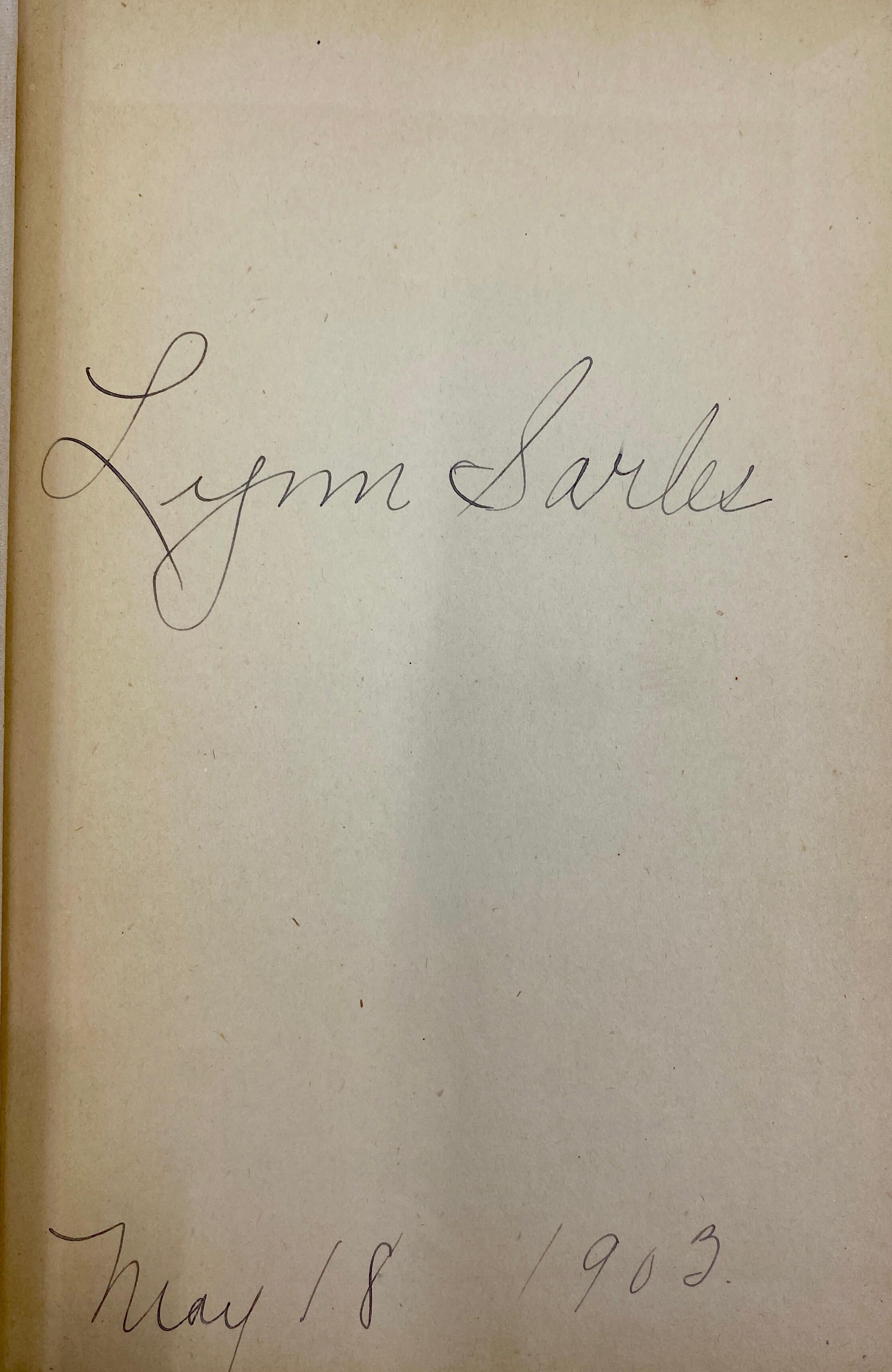 Once owned and used by Lynn Sarles. Inscription: "Lynn Sarles May 18, 1903".Cataloged By