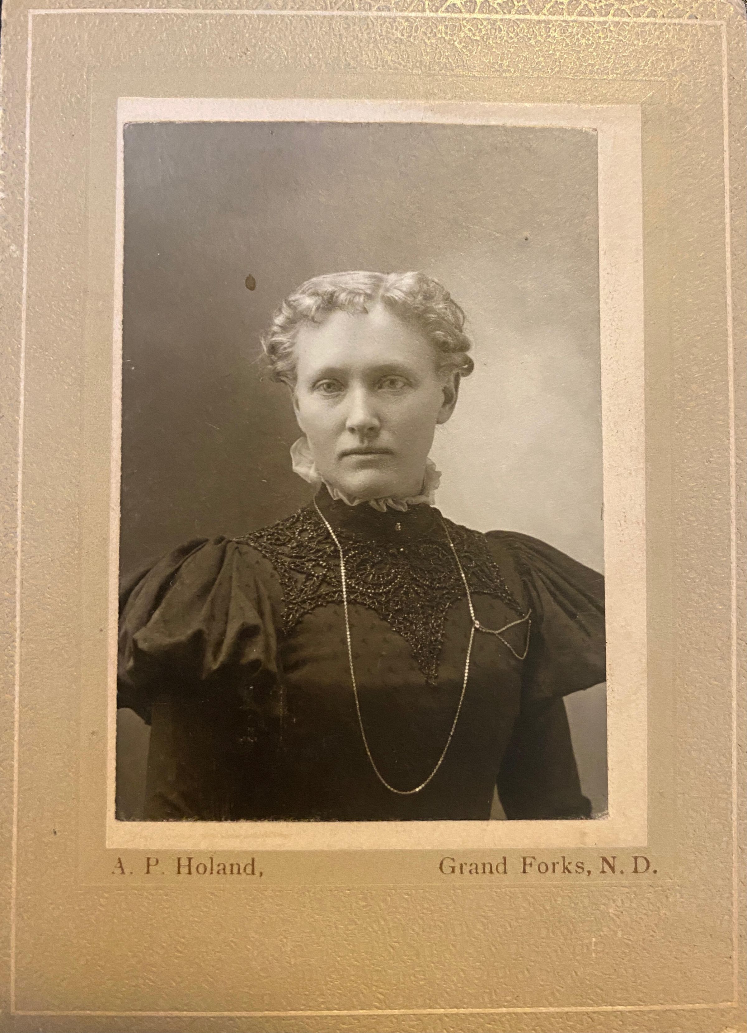Clara Figenskau, a friend of Ostina (Halvorson) Hovet of Hillsboro, ND. Clara was a daughter of Knud and Anna (Thomassen) Figenskau.Entry/Object ID
