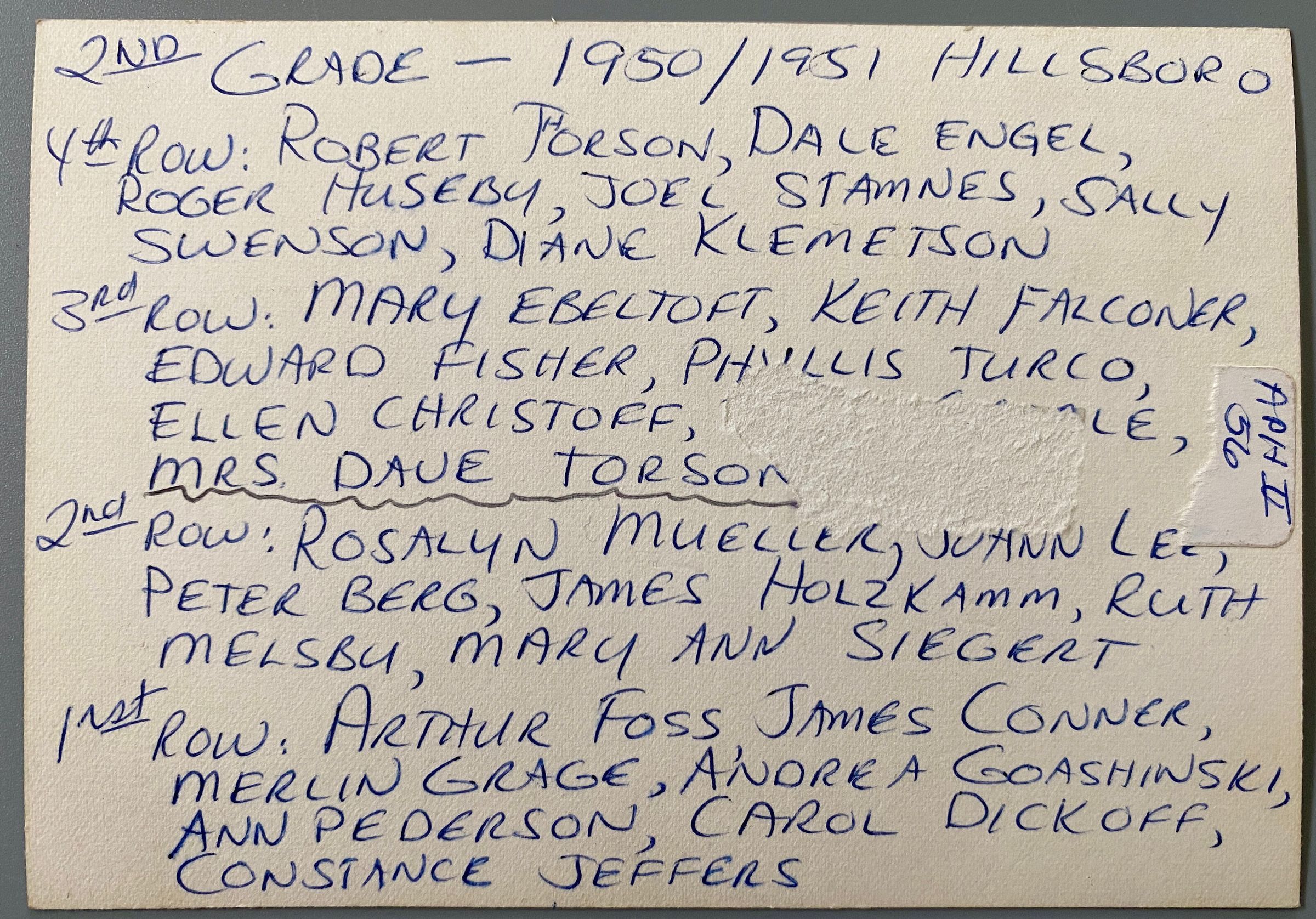 Hillsboro 2nd Grade Class 1950-1951Subject Person or Organization