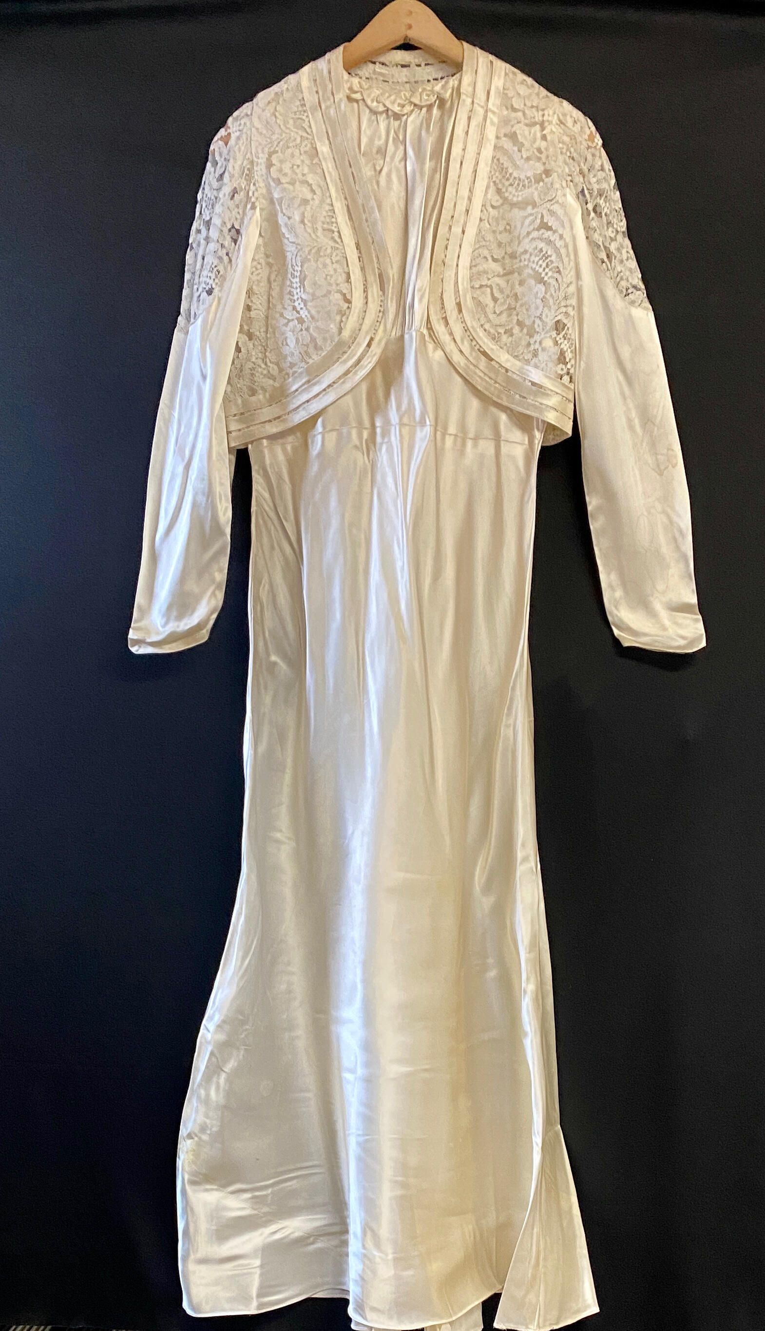 1939 Wedding Dress worn by Mrs. Henry (Gena Nelson) LiderCataloged By