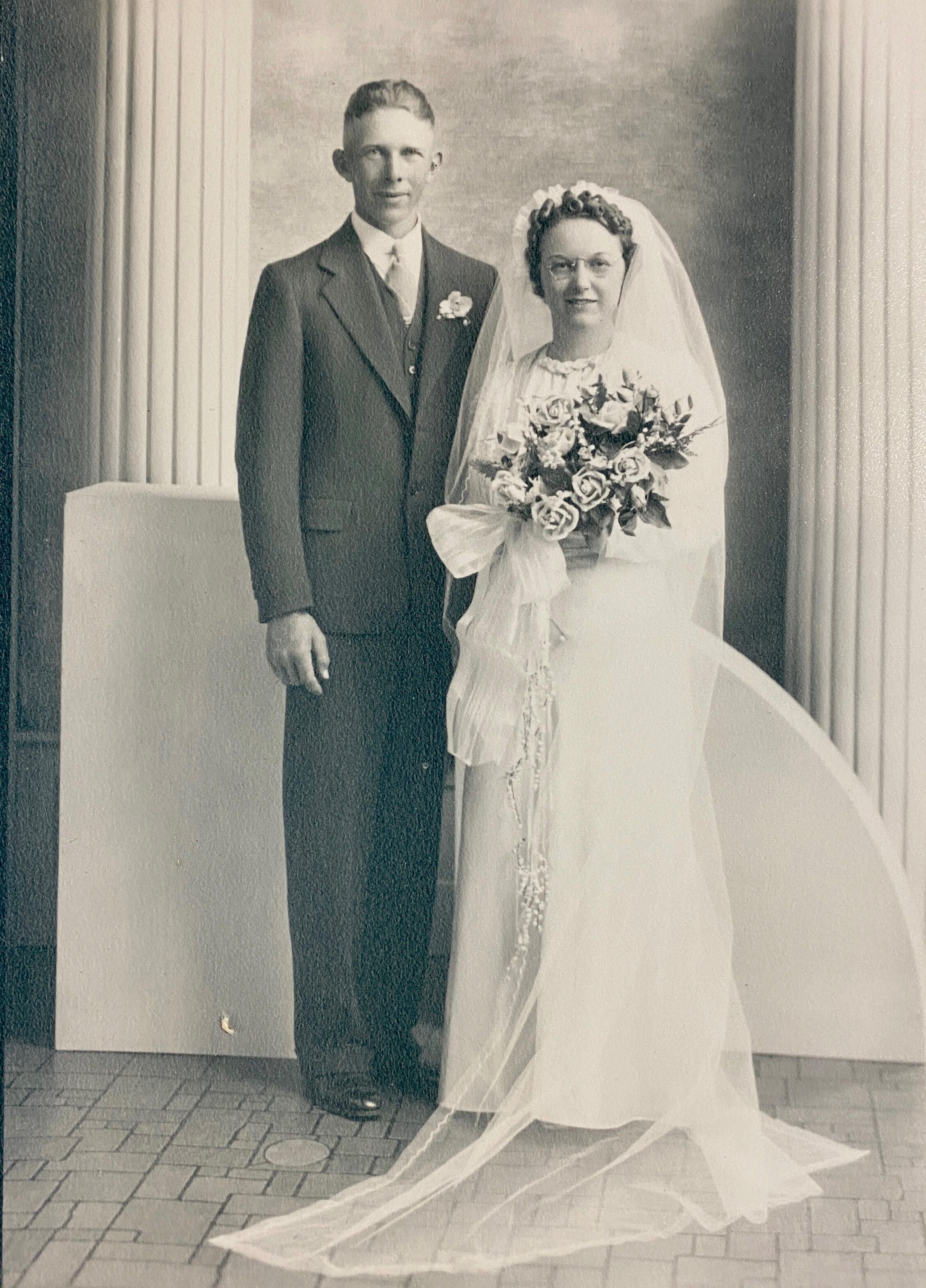 Henry and Gena (Nelson) Linder are the parents of Gloria (Mrs. Ronald) Porter. They were married on June 29, 1939 at South Viking Lutheran Church. Henry was from Baker and Gena from Maddock both in Benson County.