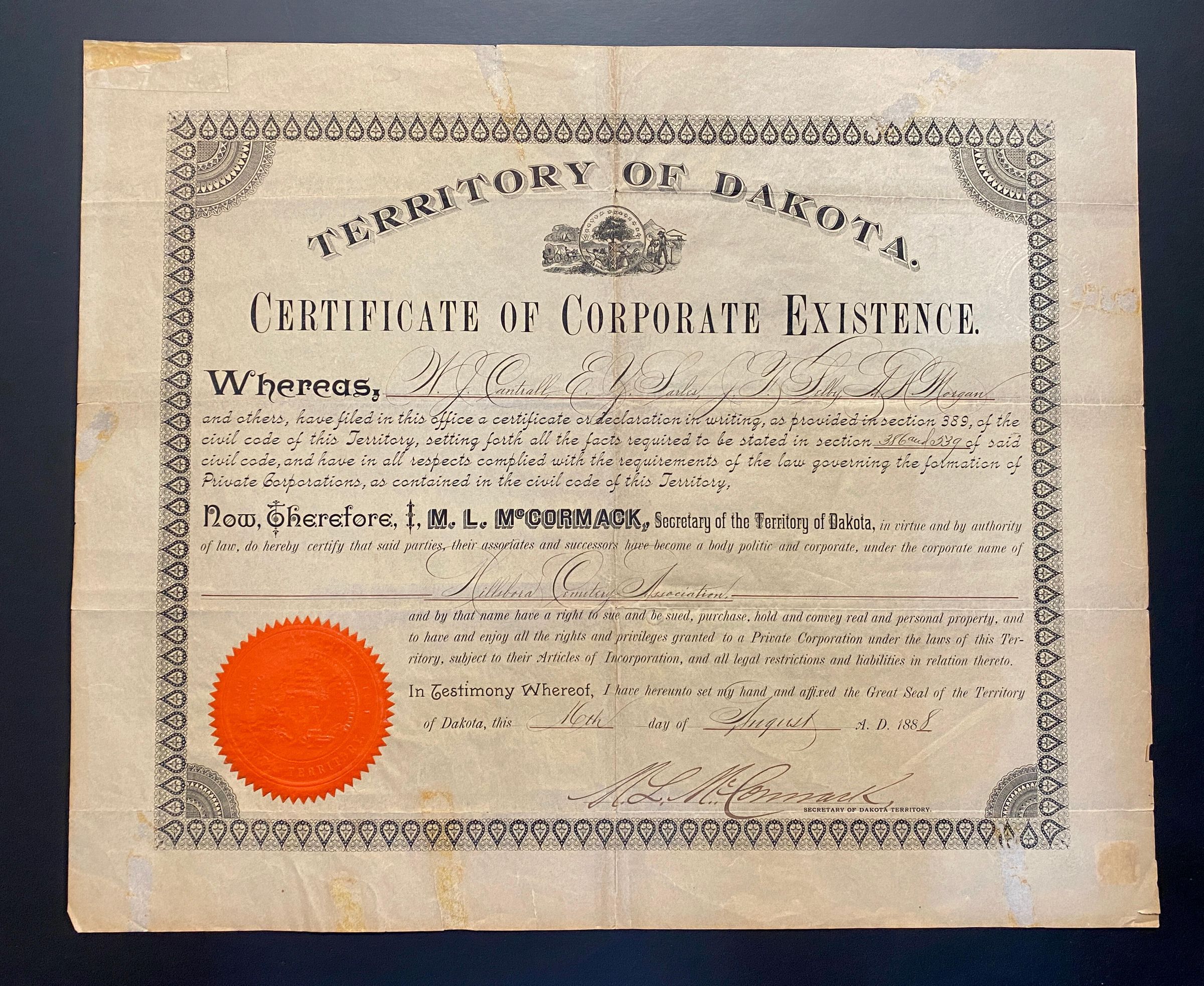 1888 Certificate of Corporate Existence - Hillsboro Cemetery AssociationCataloged By