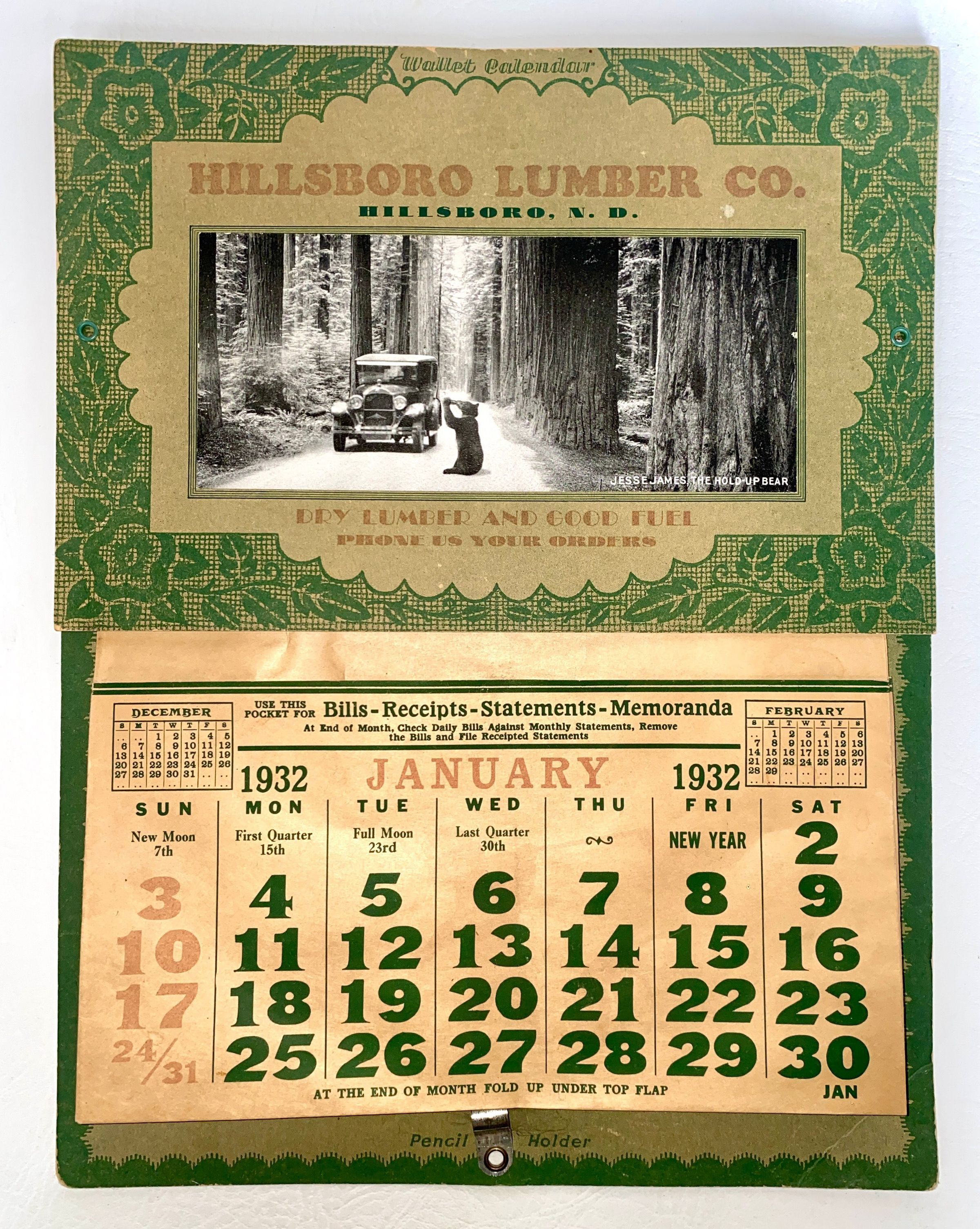 1932 Hillsboro Lumber CalendarEntry/Object ID