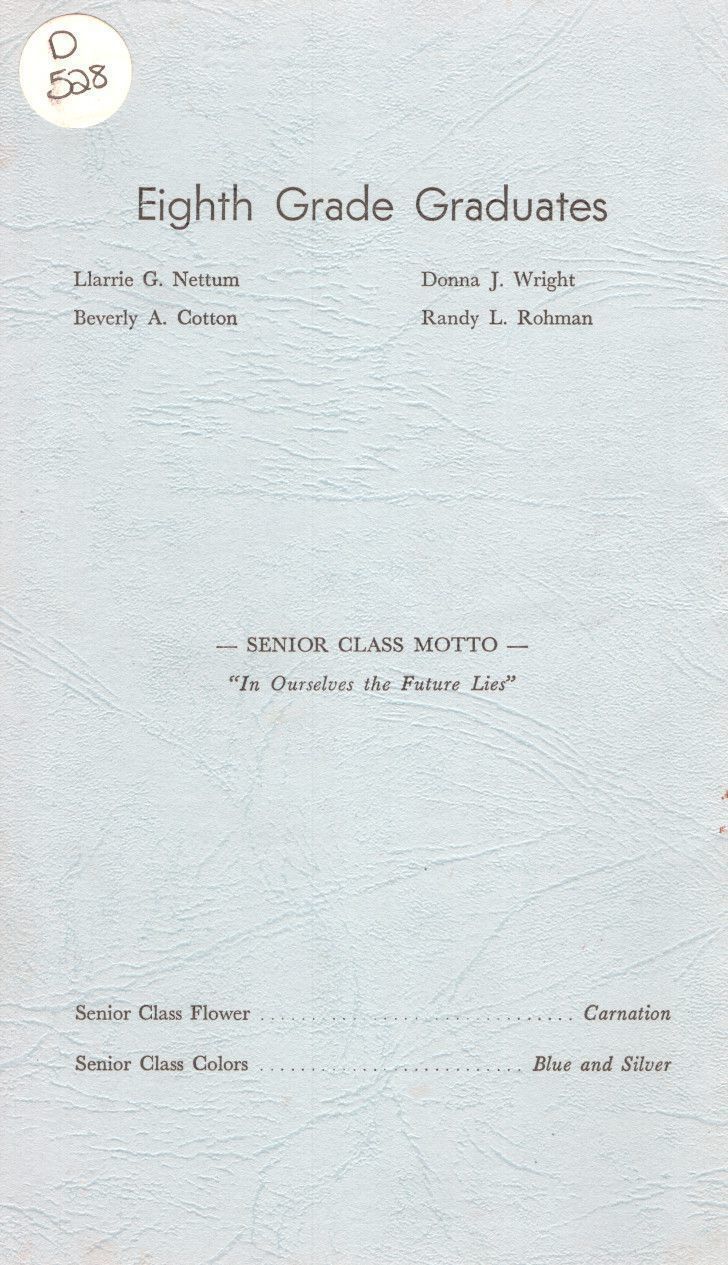 Four Caledonia Eighth Grade students graduated: Beverly Cotton, Llarrie Nettum, Randy Rohman and Donna Wright.Acquisition