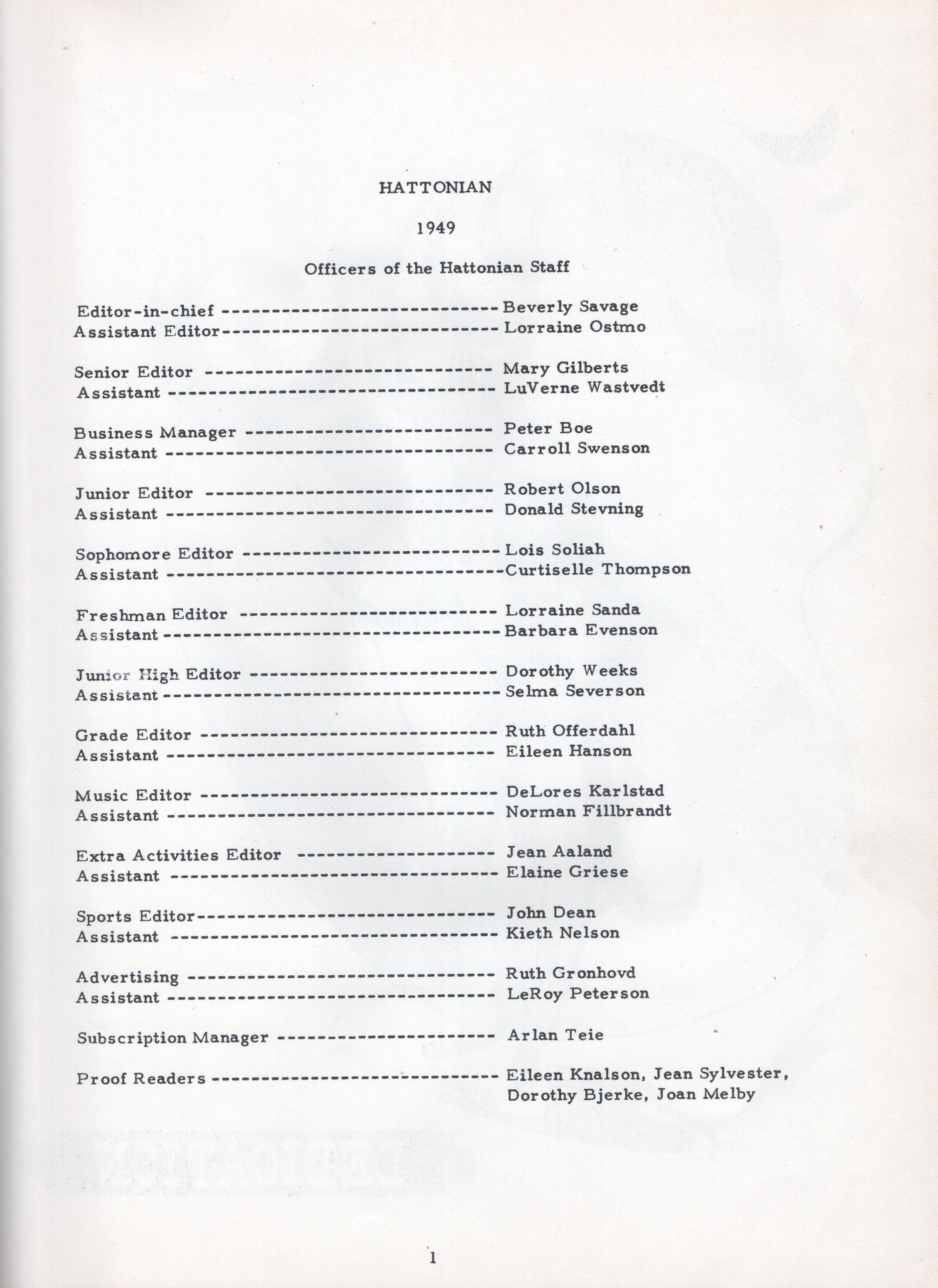 This Hatton High School 1949 Yearbook is on display at the Hatton-Eielson Museum, and at the Plummer House Museum in Hillsboro.Acquisition