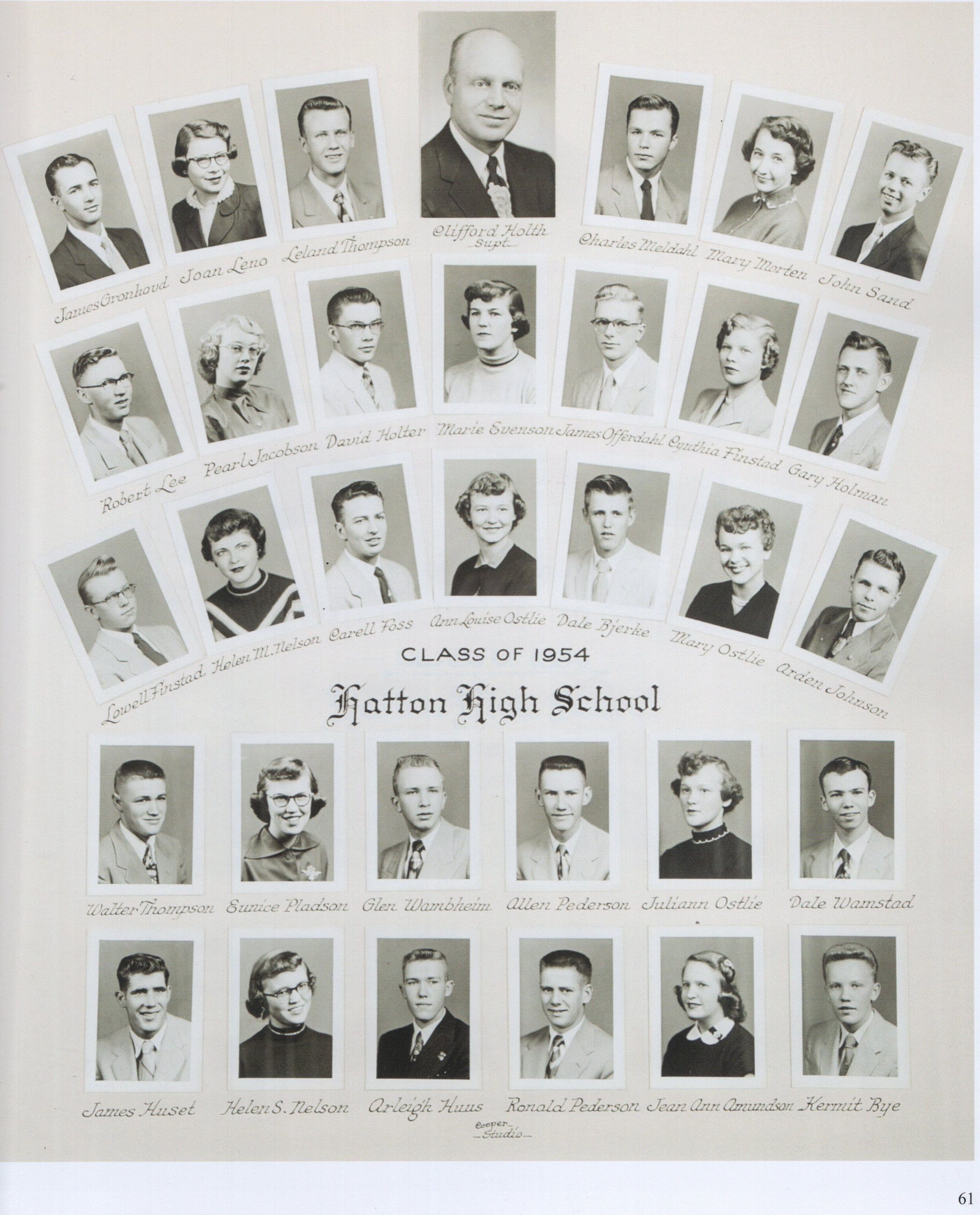 A photograph of the Hatton High School Class of 1954 is included on page 61 in the All School Reunion book, "Hatton Flyers".