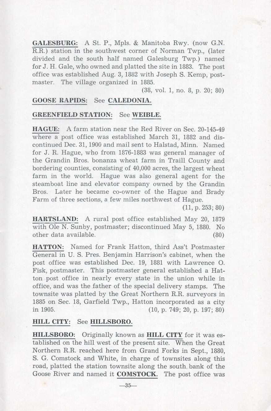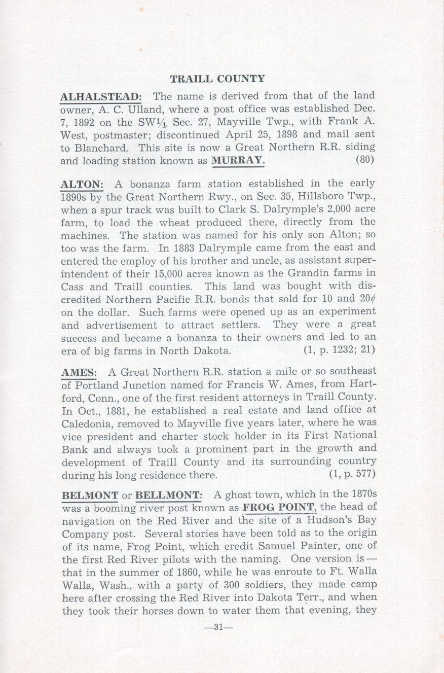 Origins of North Dakota Place Names, Traill County, pages 31 to 39Entry/Object ID
