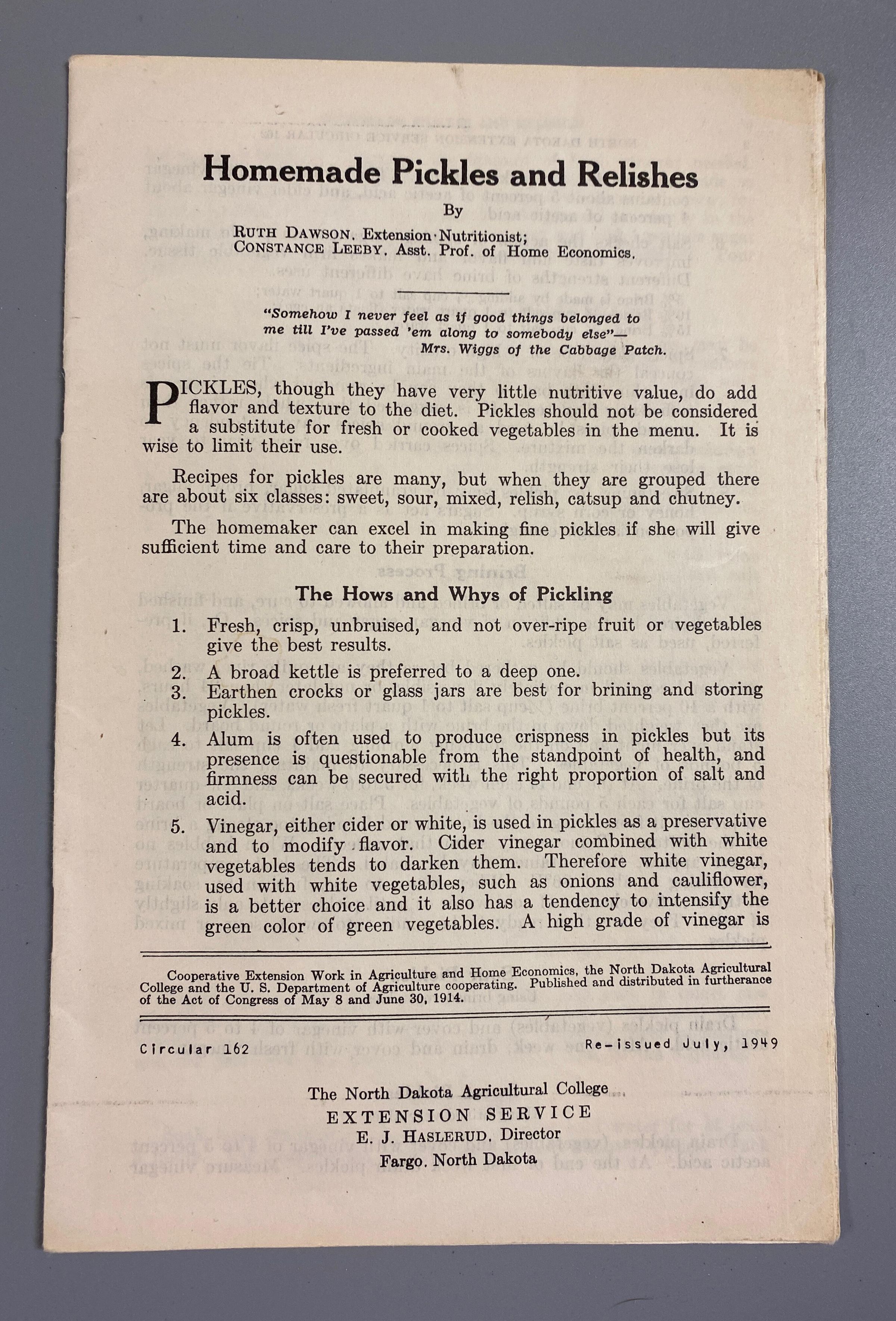 1949 Extension Service Homemade Pickles & RelishesCataloged By