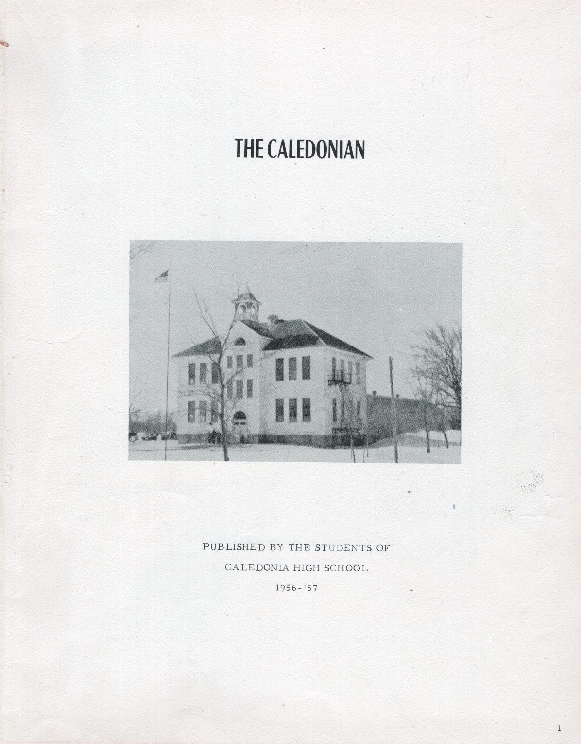 A Caledonia High School 1957 Yearbook is available for viewing at the Traill County Historical Society Plummer House Museum in Hillsboro. This 1957 yearbook was donated by John Wright.Acquisition
