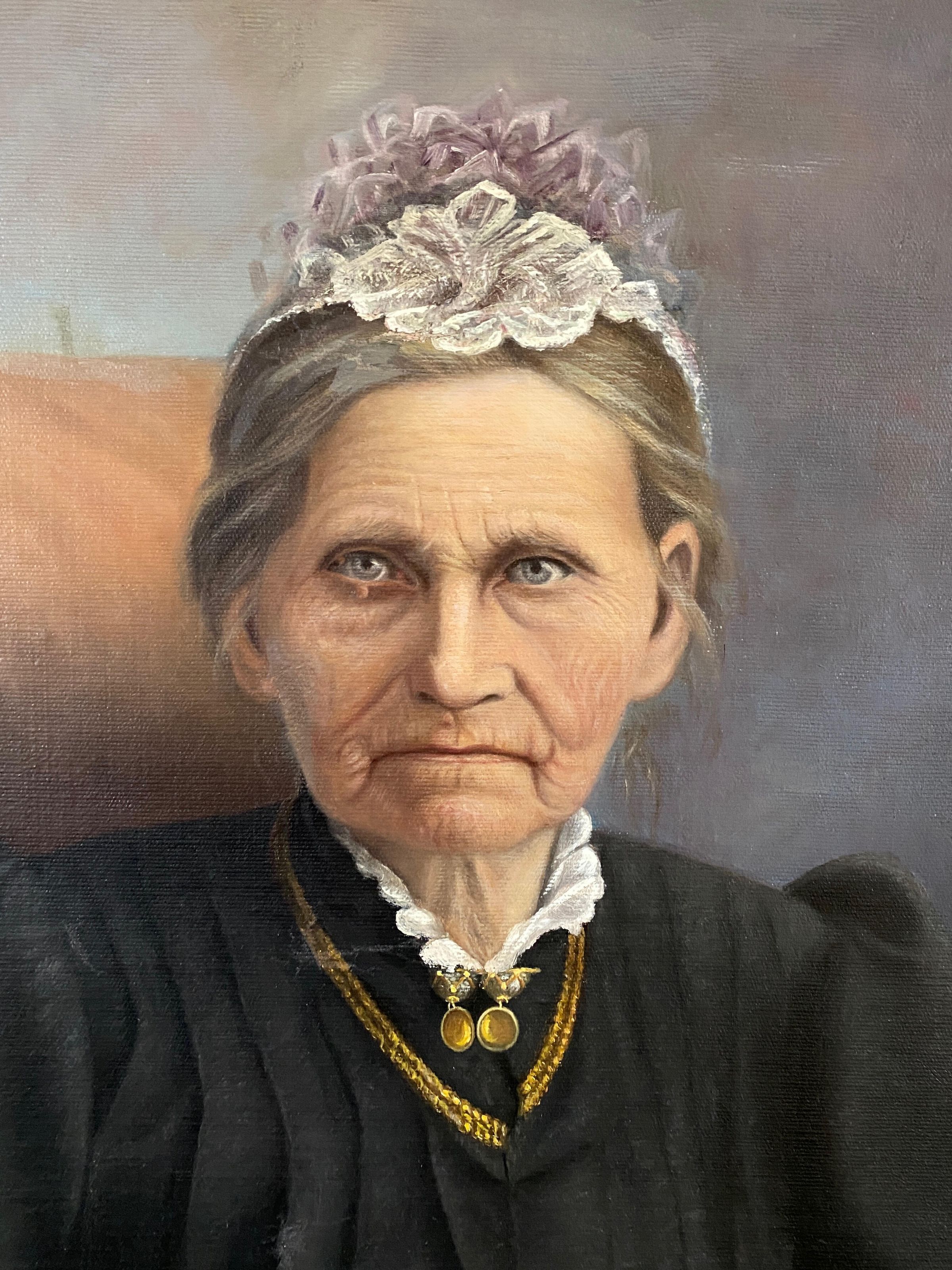She and her children were in Houston County, Minnesota for one year. With a yoke of oxen and covered wagon in the summer of 1873, she drove from Houston County to Glyndon, Minnesota near which place she filed on a quarter section of land, which with the help of her sons, farmed and acquired title to.