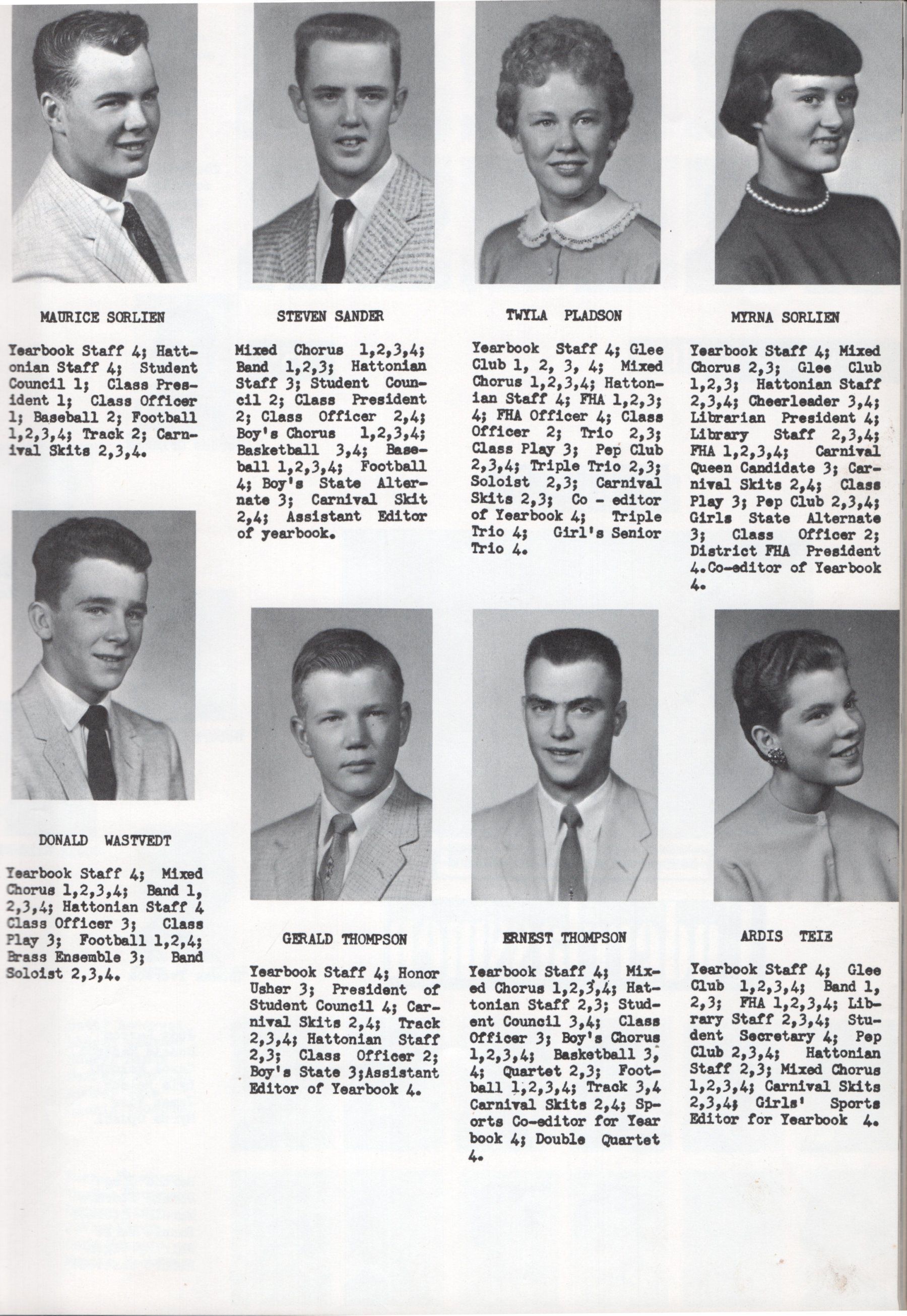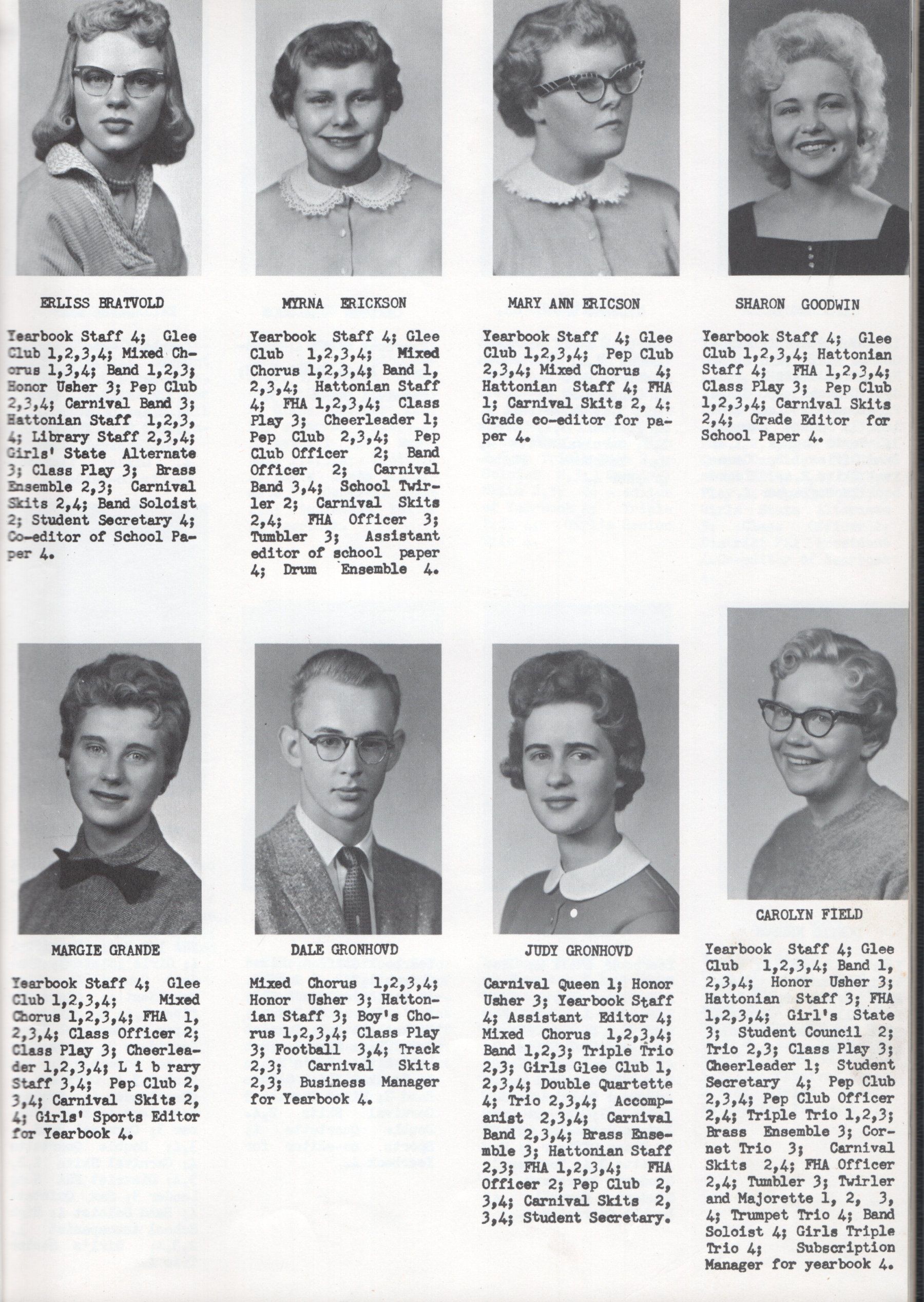 This Hatton High School 1958 Yearbook is on display at the Hatton-Eielson Museum, and at the Plummer House Museum in Hillsboro.Location