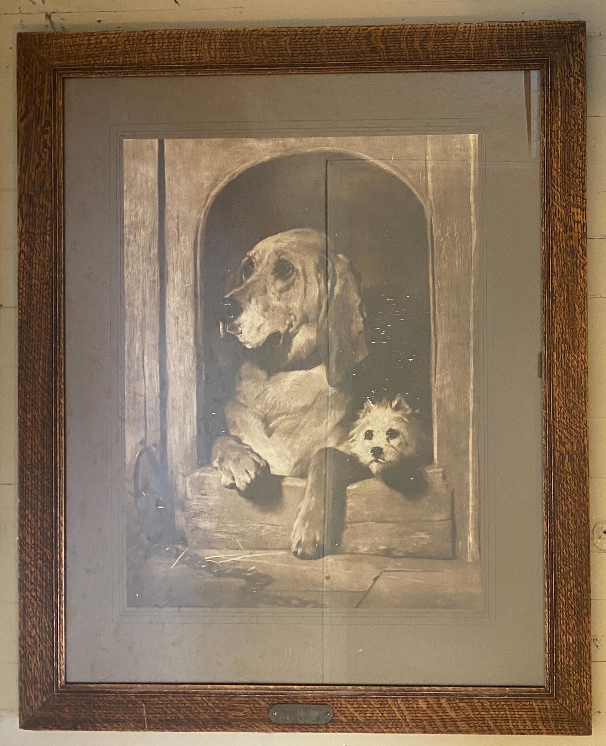 Dignity and Impudence Print by Sir Edwin Landseer in oak frame.