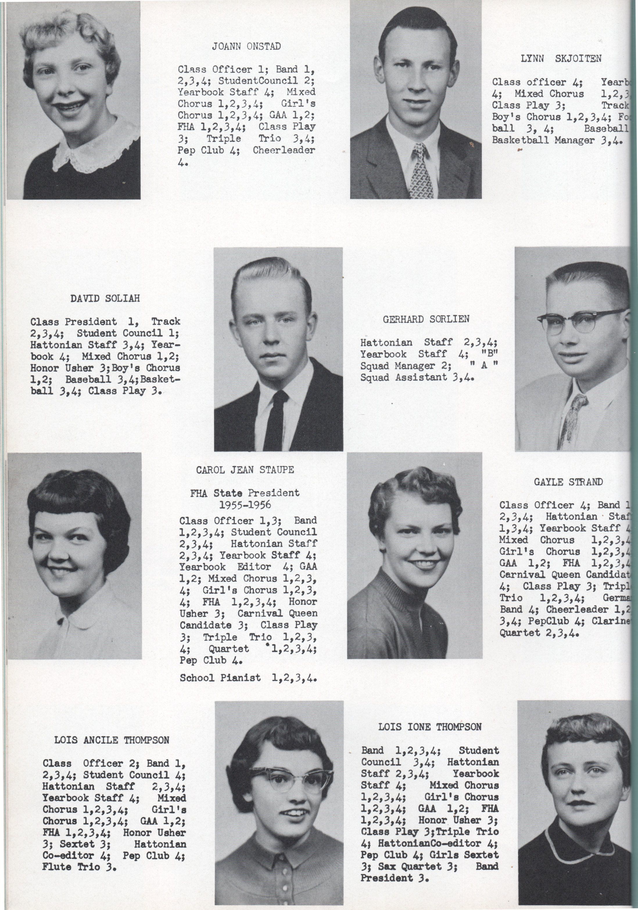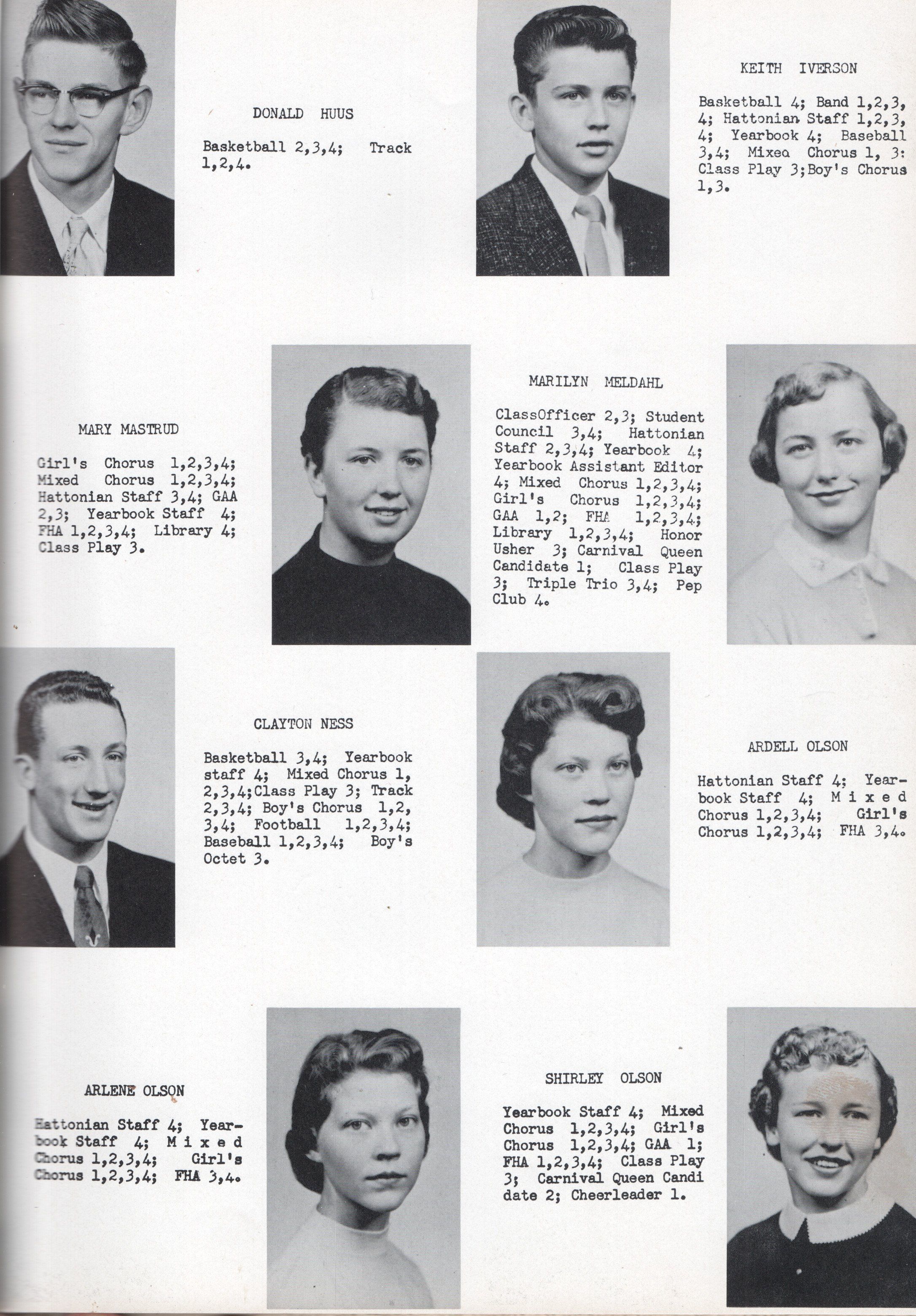This Hatton High School 1956 Yearbook is on display at the Hatton-Eielson Museum, and at the Plummer House Museum in Hillsboro.Acquisition