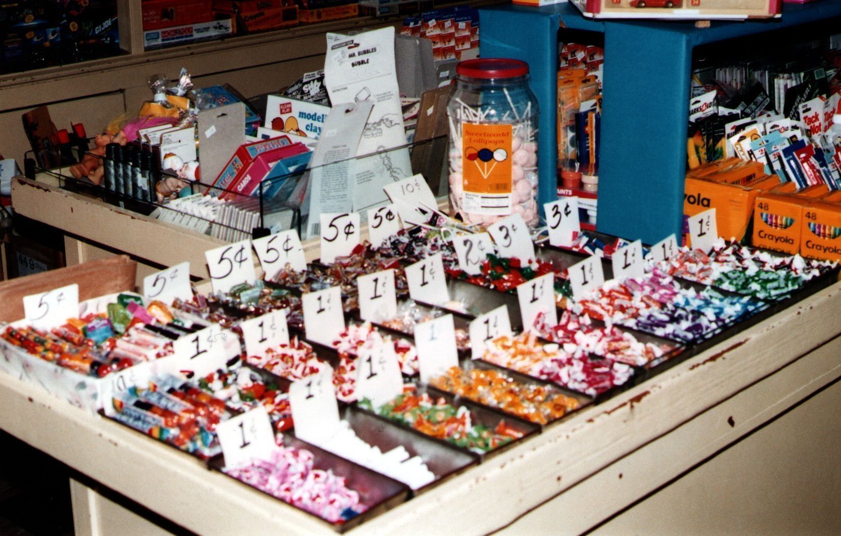 This family history folder contains information about Paul and Julia (Ouse) Fankhanel and Earl and Joyce (Watson) Fankhanel (photo, left), who operated a family-run variety store in Hillsboro (photo) from 1929 to 1995. Their store was famous for its selection of 1c and 5c candies (photo), especially popular with children.