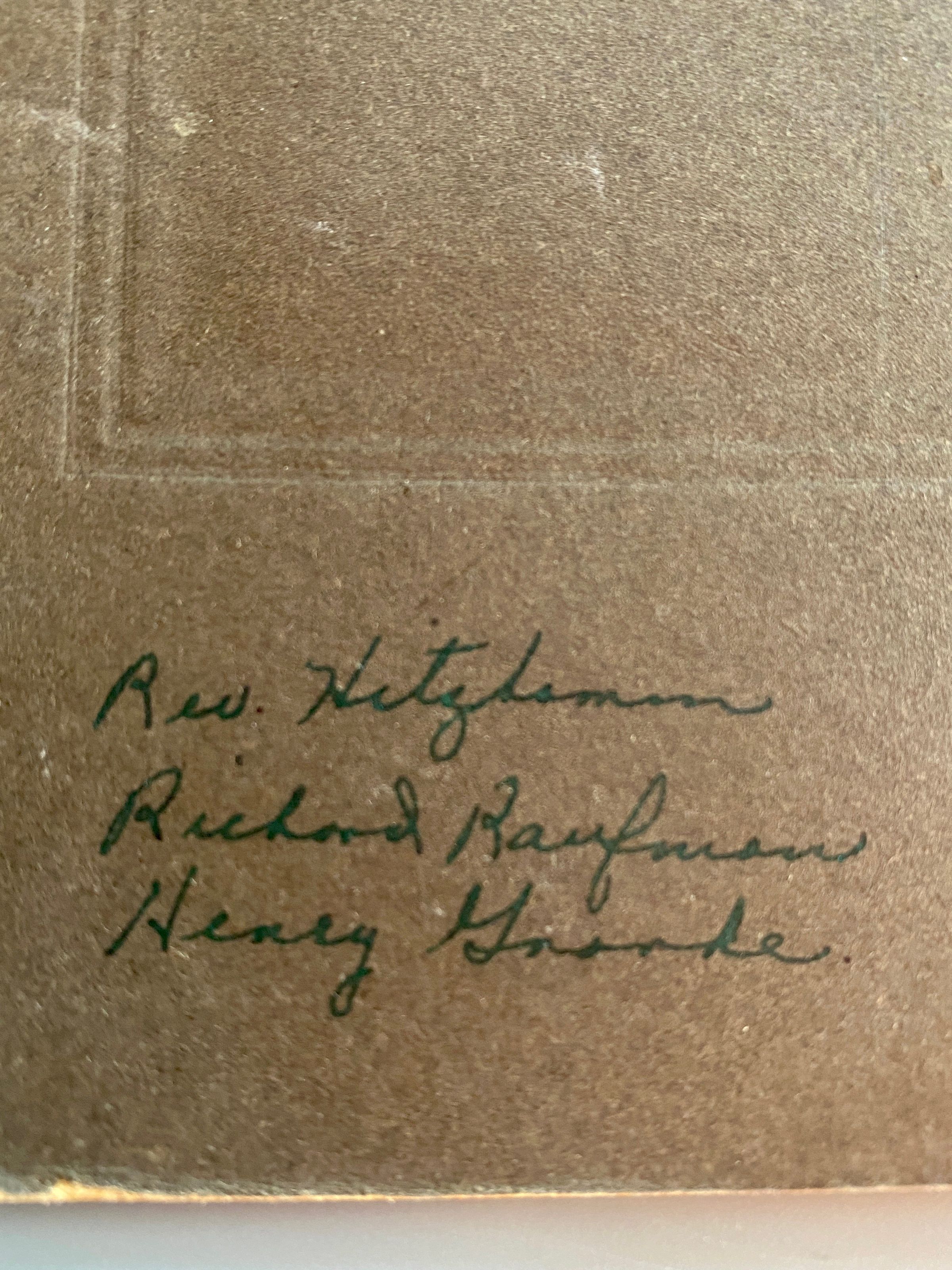 Immanuel Lutheran Pastor W. C. Hitzemann (seated) with Richard Kaufman at left & Henry Gronke (Groehnke) at right.Context