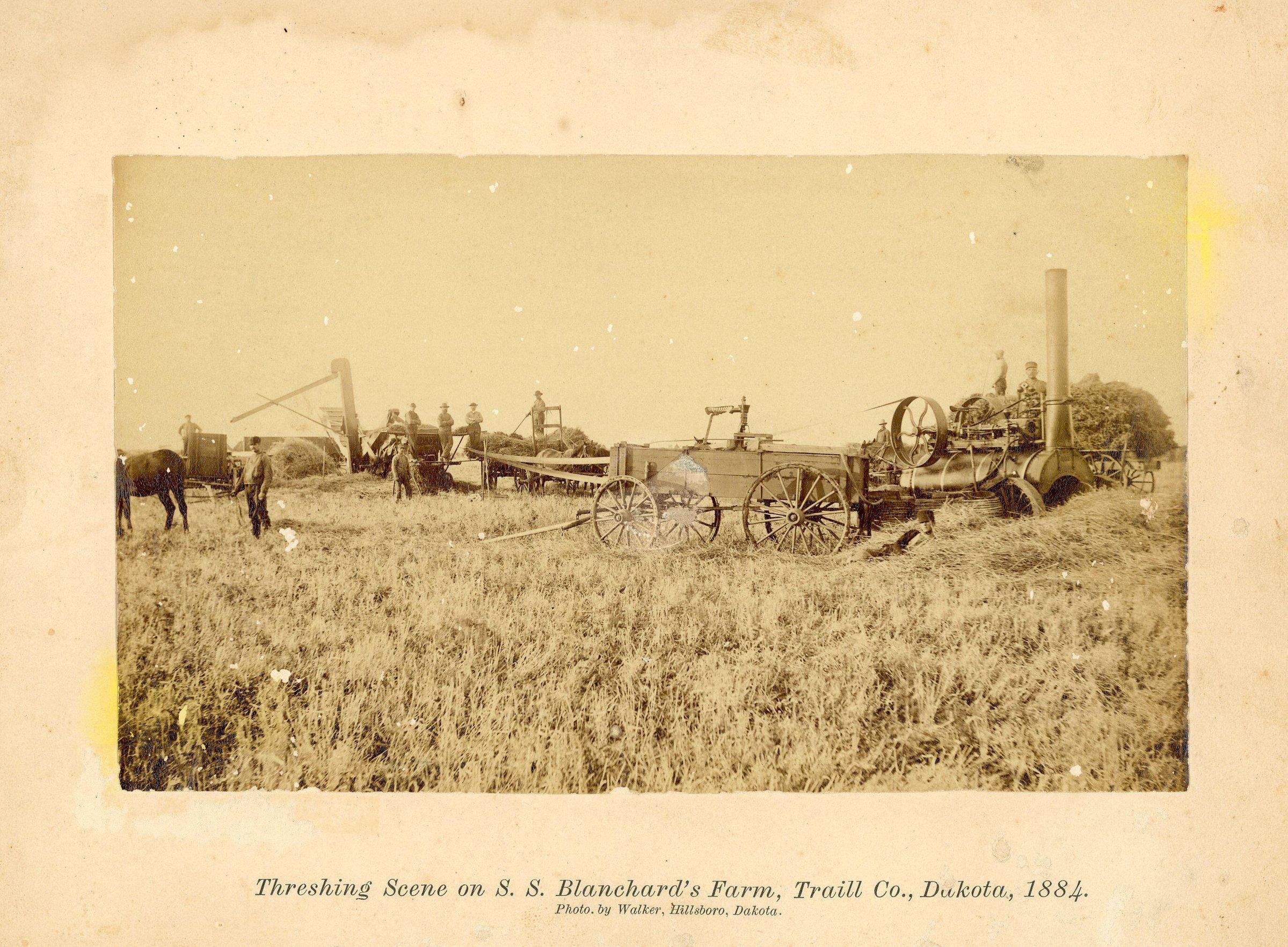 Threshing Scene on S. S. Blanchard's Farm, Traill County , Dakota, 1884Subject Person or Organization