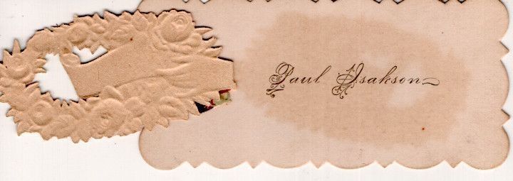 Cards from family in the Hovet Collection included those from Ole Rognstad, Stina's first cousin (see Catalogit entry 2025.211.1), from Olaf Isakson (see below), a brother to Julia Isakson, wife of Ole Rognstad, and from Paul Isakson (see below), another brother to Julia Isakson [documented in 1880 and 1900 US Census data for Grant Township in Dunn county, WI].