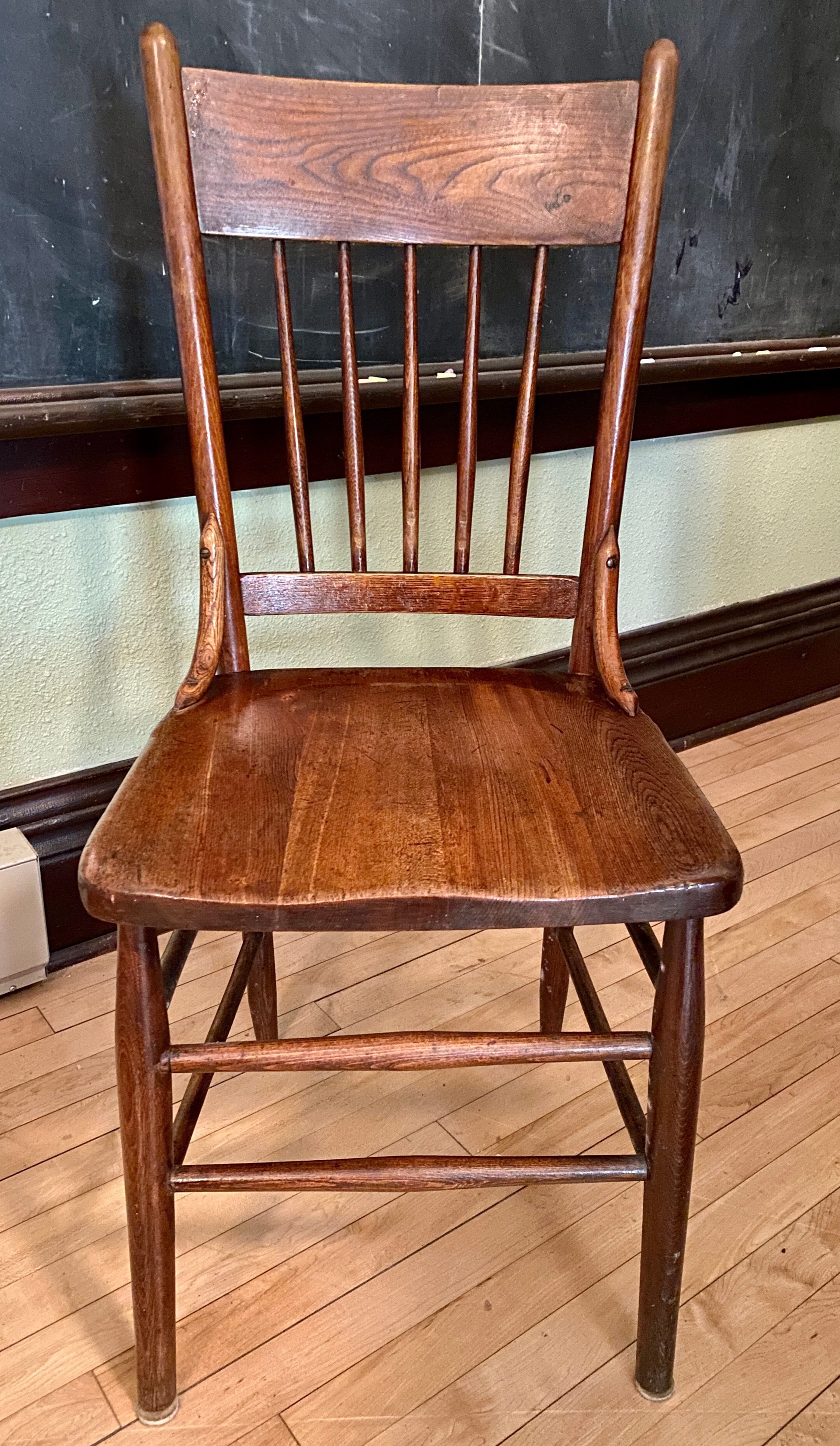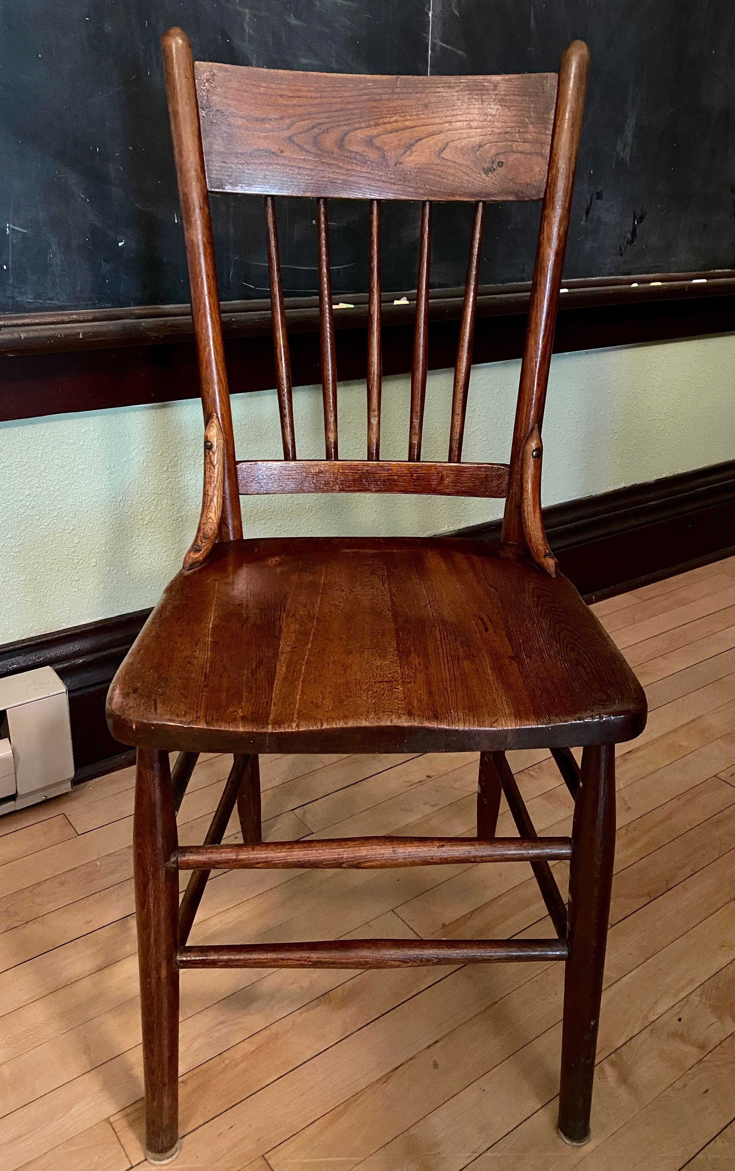 Four High Back Chairs used is the Bloomfield School House and when the building was used as the Bloomfield Township Hall.Cataloged By