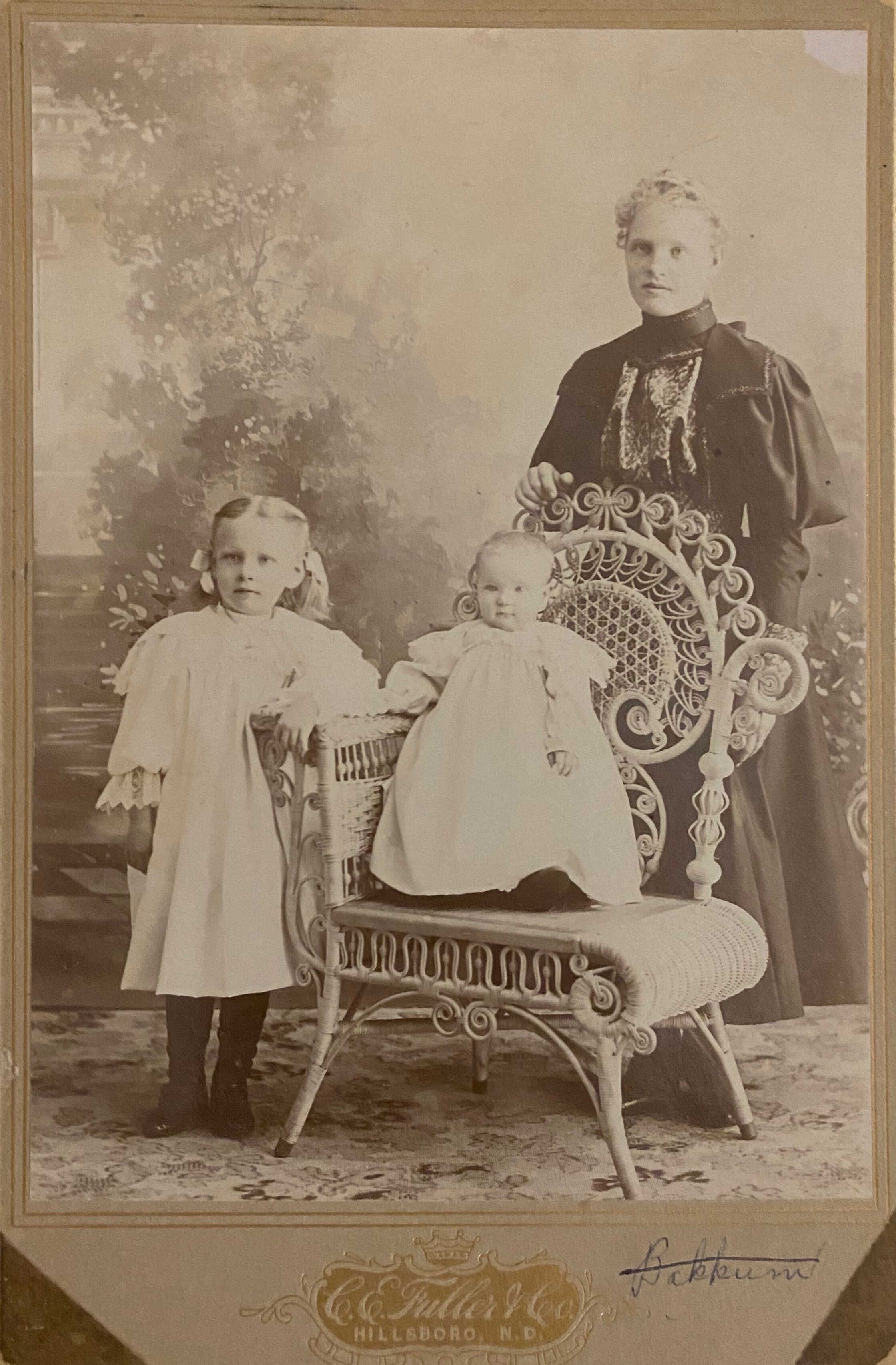 Unknown Woman & Children - Back of photo - Bakkum - Anna Ostby, MayvilleCataloged By