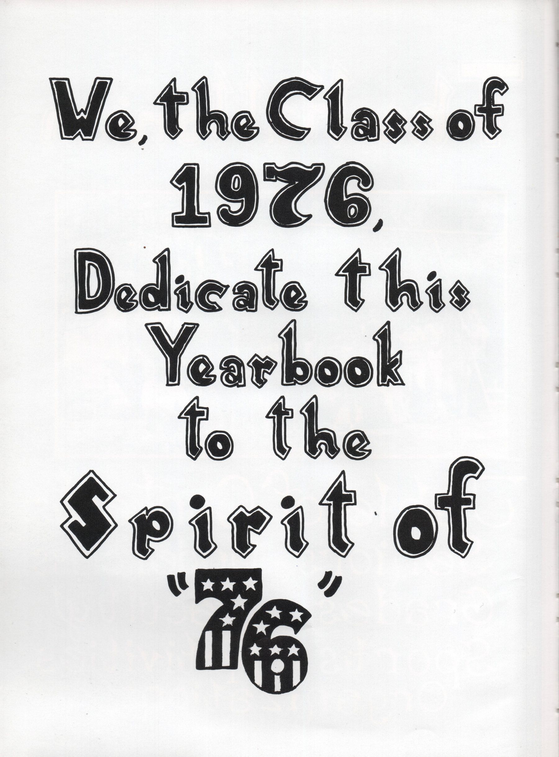 The Class of 1976 Hatton High School Yearbook was titled Hattonian 76. This yearbook was dedicated to the “Spirit of 76”.