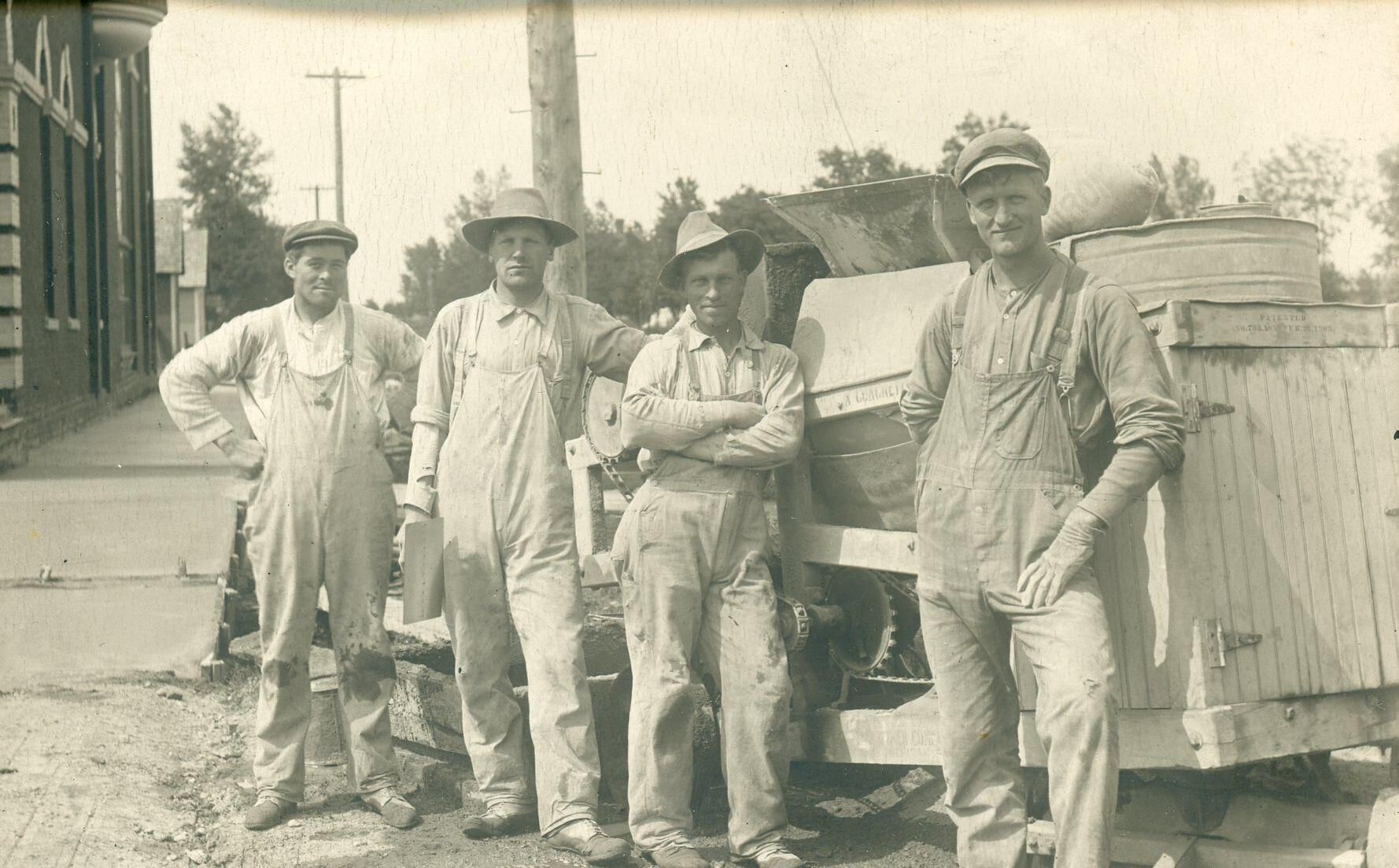 J. B. Hanson, Arne Klemetson, and Albert Anderson pouring cement in the 1930'sSubject Person or Organization
