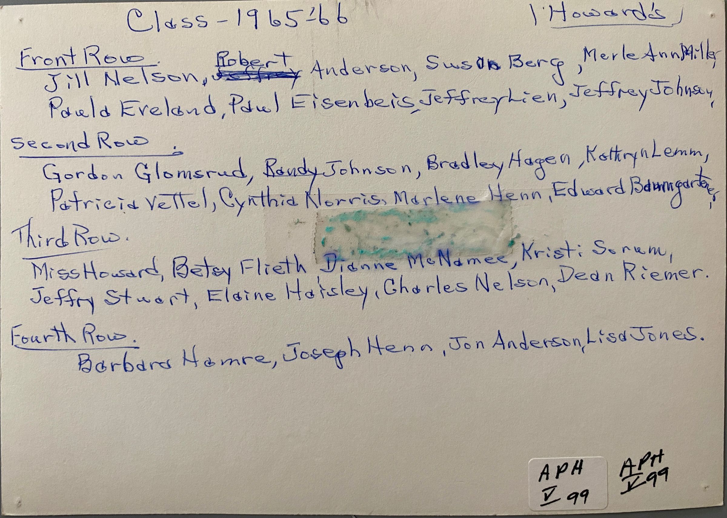 Jill Nelson, Robert Anderson, Susan Berg, Merle Ann Miller, Paula Eveland, Paul Eisenbeis, Jeffrey Lien, Jeffrey Johnson, Gordon Glomsrud, Randy Johnson, Bradley Hagen, Kathryn Lemm, Patricia Vettel, Cynthia Norris, Marlene Henn, Edward Baumgartner, Betsy Flieth, Dianne McNamee, Kristi Sorum, Jeffrey Stuart, Elaine Haisley, Charles Nelson, Dean Riemer, Barbara Hamre, Joseph Henn, Jon Anderson, Lisa Jones, Hazel Howard