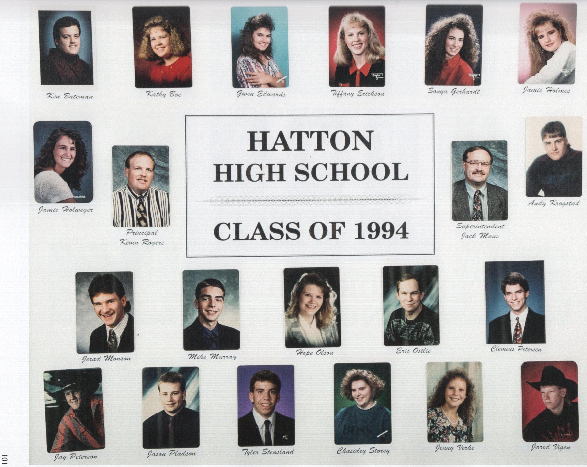 A photograph of the Hatton High School Class of 1994 is included on page 101 in the All School Reunion book, "Hatton Flyers", which is on display at the Hatton-Eielson Museum.