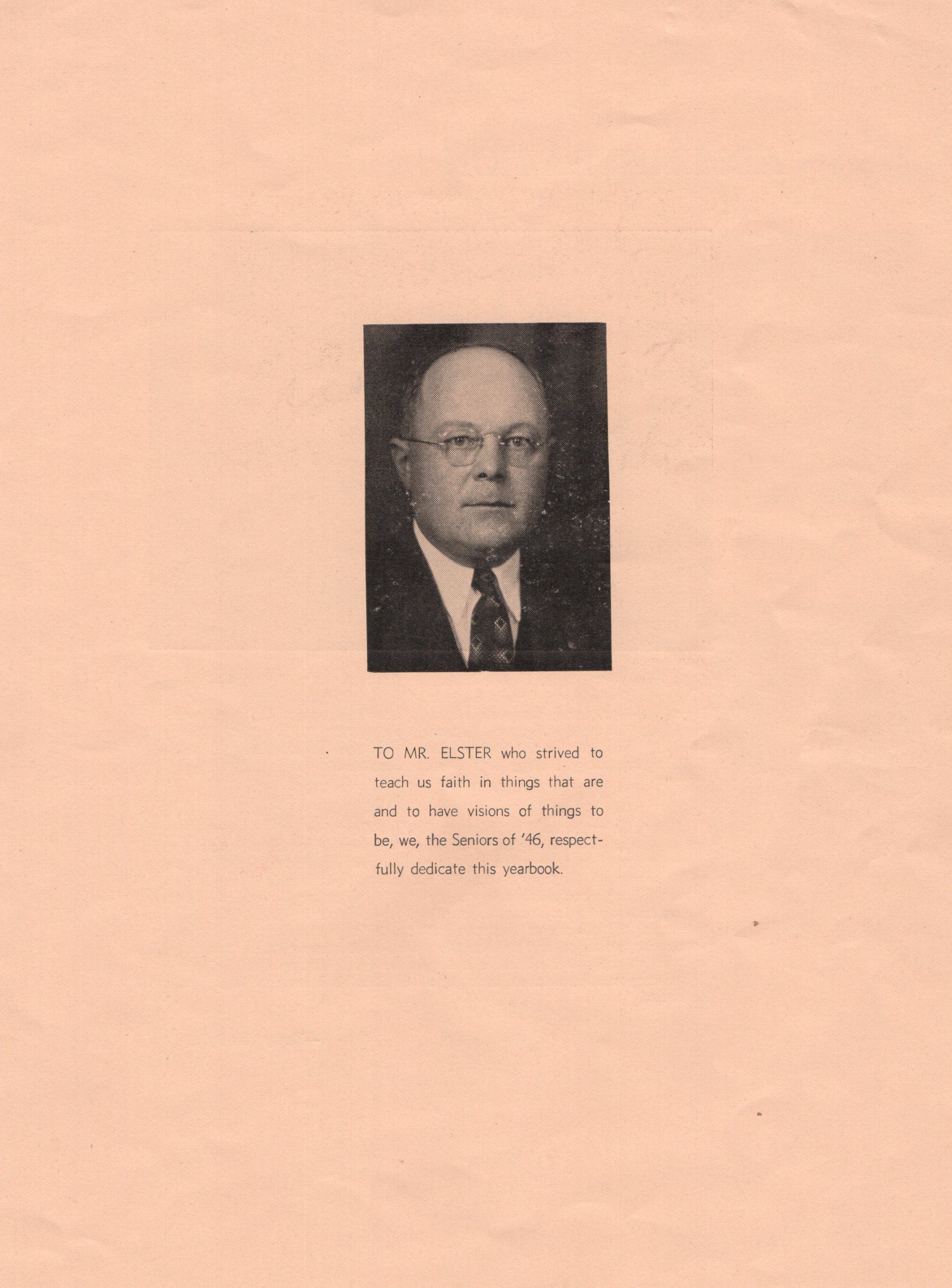The Class of 1946 Hillsboro High School Yearbook, titled: “The 1946 Burro”, was dedicated to Mr. Elster.