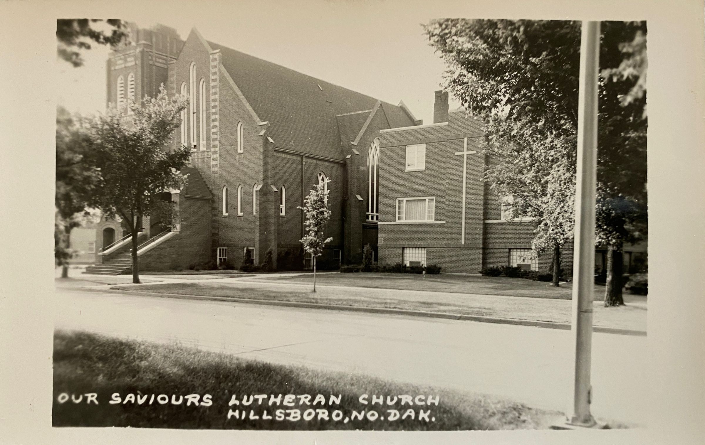Our Savior's Lutheran Church, Hillsboro, ND. Postcard image showing 1958 addition of a parish education building at right.Entry/Object ID