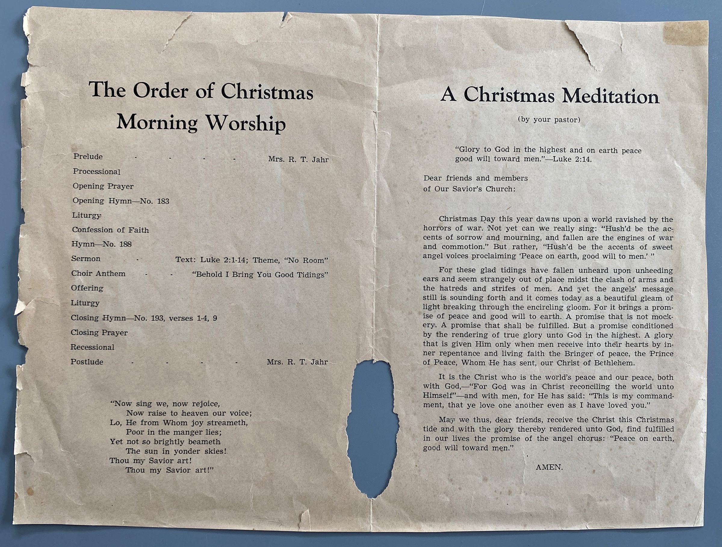 1941 Our Savior’s Lutheran Church Christmas Service BulletinContext