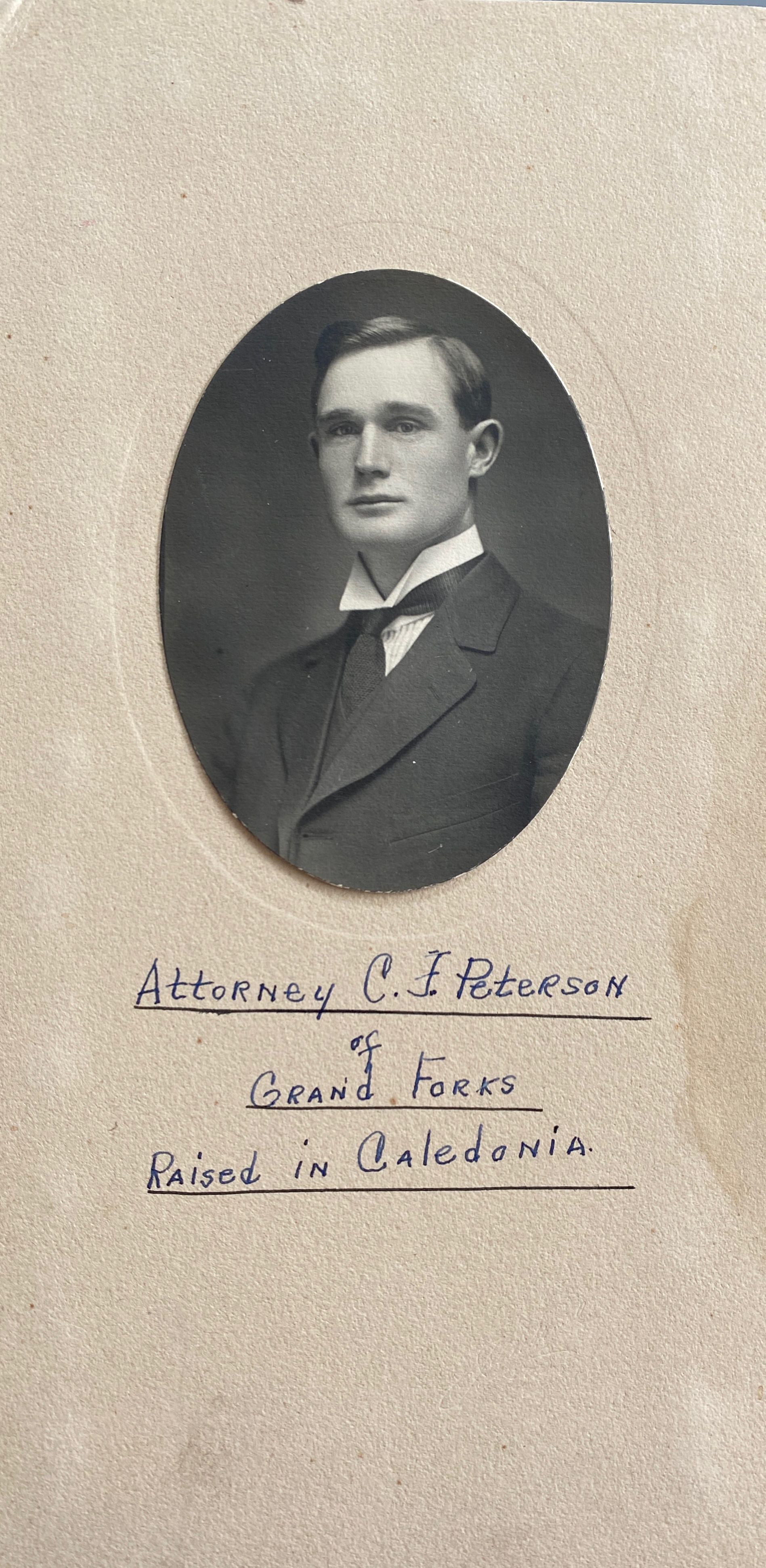 C. F. Peterson, Attorney of Grand Forks. Raised in Caledonia, ND.Cataloged By