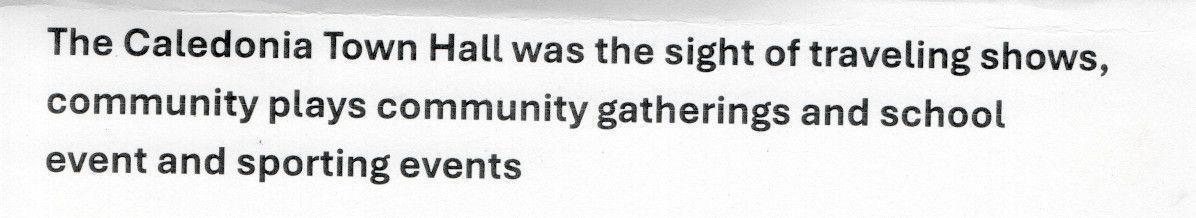 Traill County historian, John Wright, has noted (below) that the Caledonia Town Hall was the sight of traveling shows, community plays, community gatherings, school events and sporting events.Acquisition