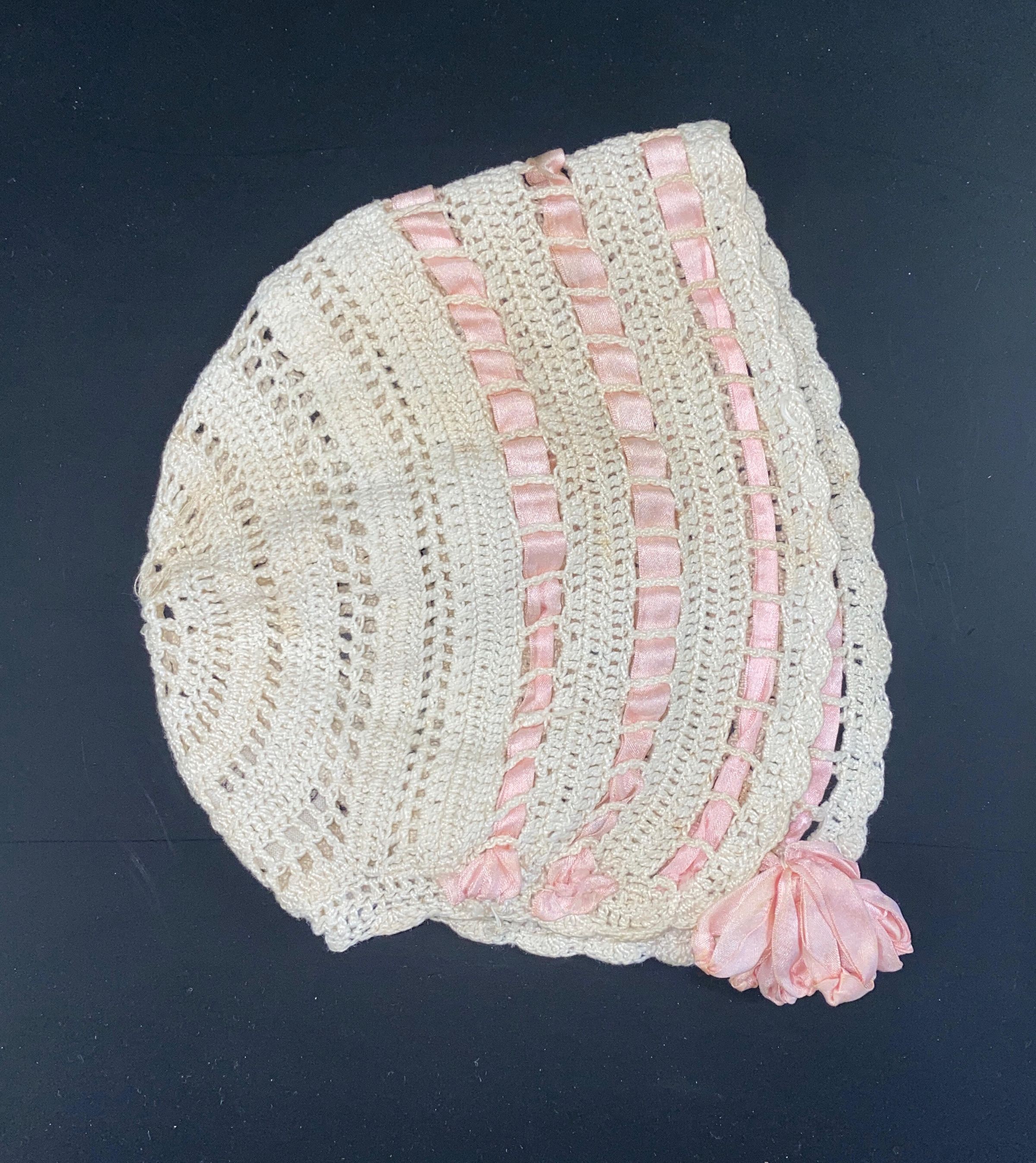 Crocheted Baby Cap with Pink RibbonEntry/Object ID